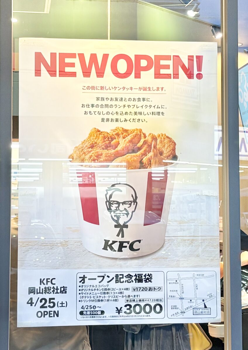 会議所通り沿いにつくってた「ケンタッキー岡山総社店」は4月25日にグランドオープンするようです。