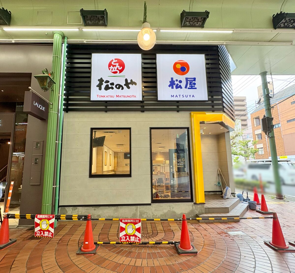 【岡山市北区】表町商店街につくってる「松屋・松のや岡山表町店」に看板ついてる。4月28日10時オープン