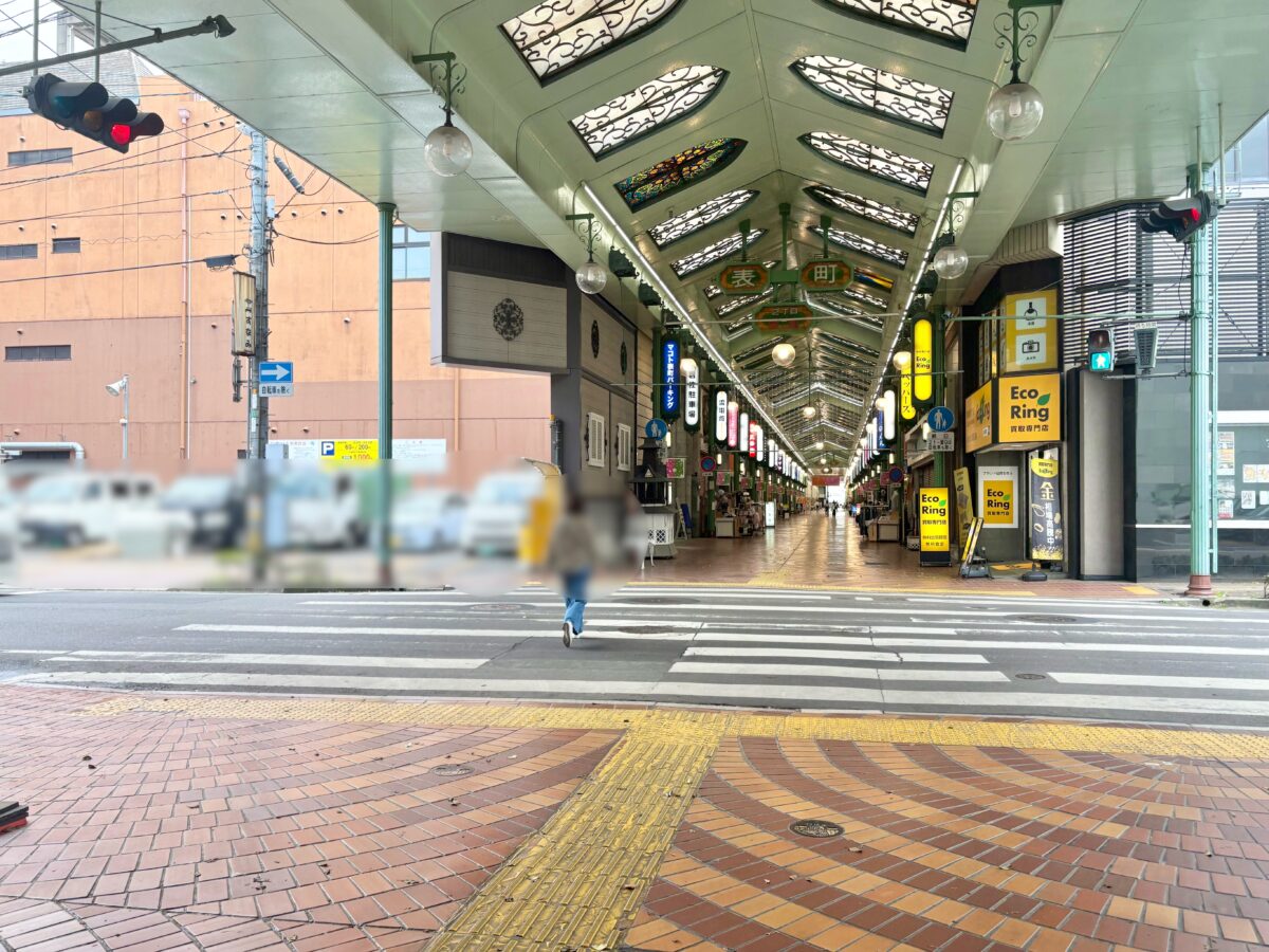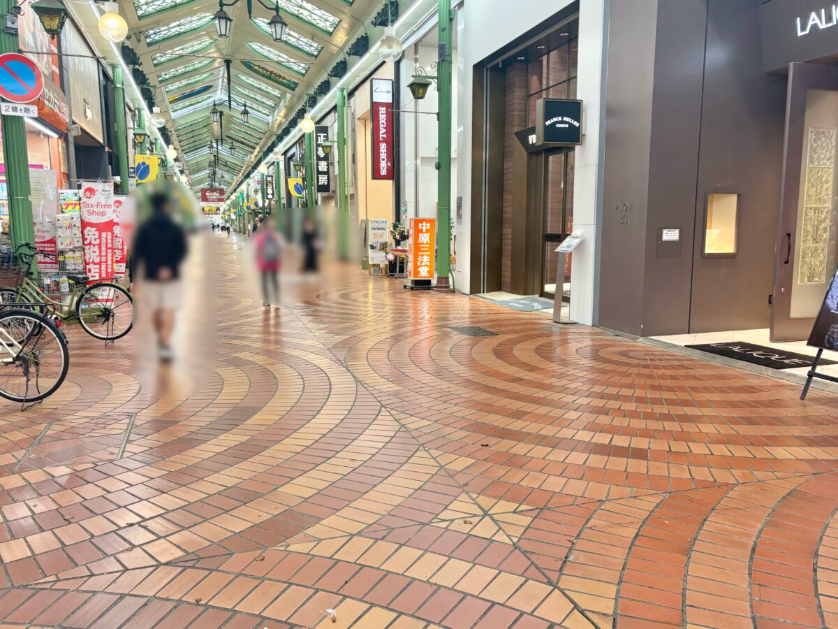 表町商店街の北を見ると「ドラッグセガミ岡山表町本店」や最近オープンした「正夢書房」さんや天満屋がある方。