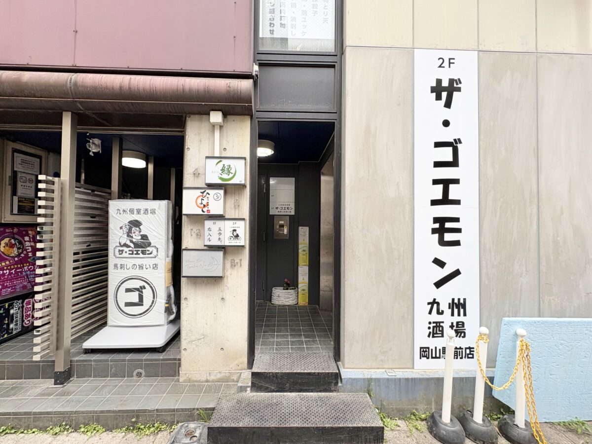岡山駅前の居酒屋が増えているエリアに「九州個室酒場 ザ・ゴエモン 岡山駅前店」さんの看板ができていました。