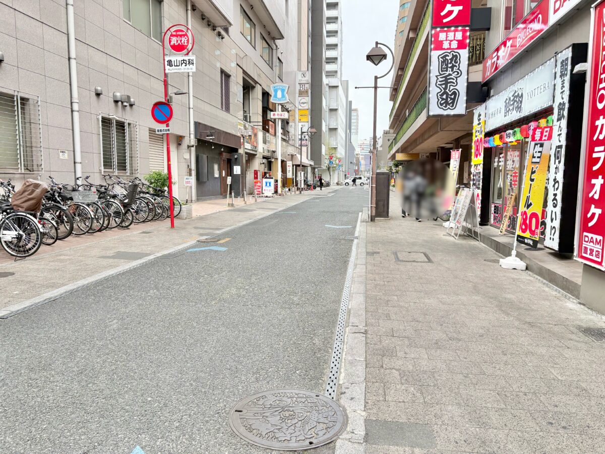 場所は「かに道楽」と「酔っ手羽」さんの間、「大衆酒場 緑」さんや「五歩先、右入ル」さんなど新しい居酒屋が入ってきているビルの2階です。