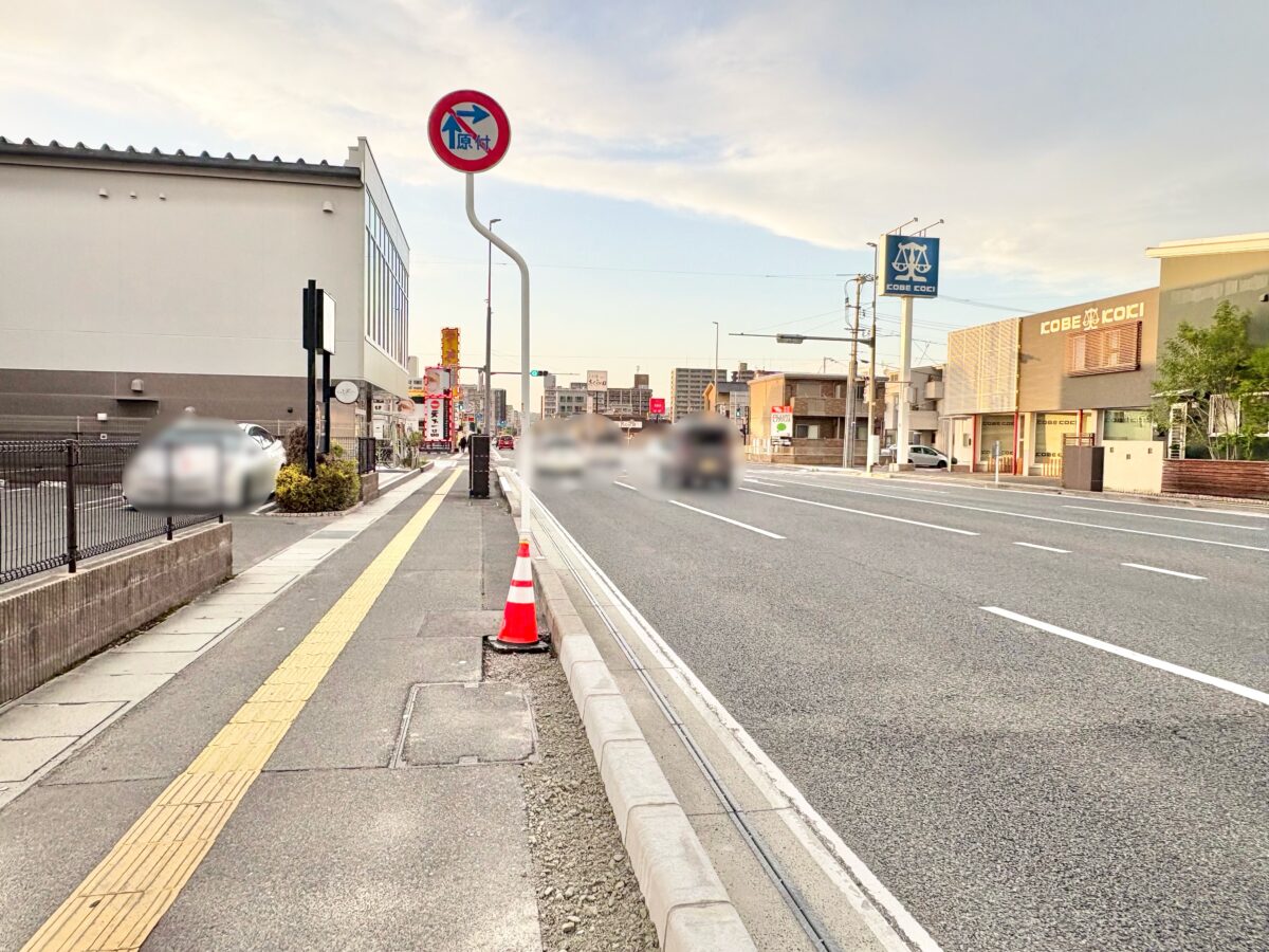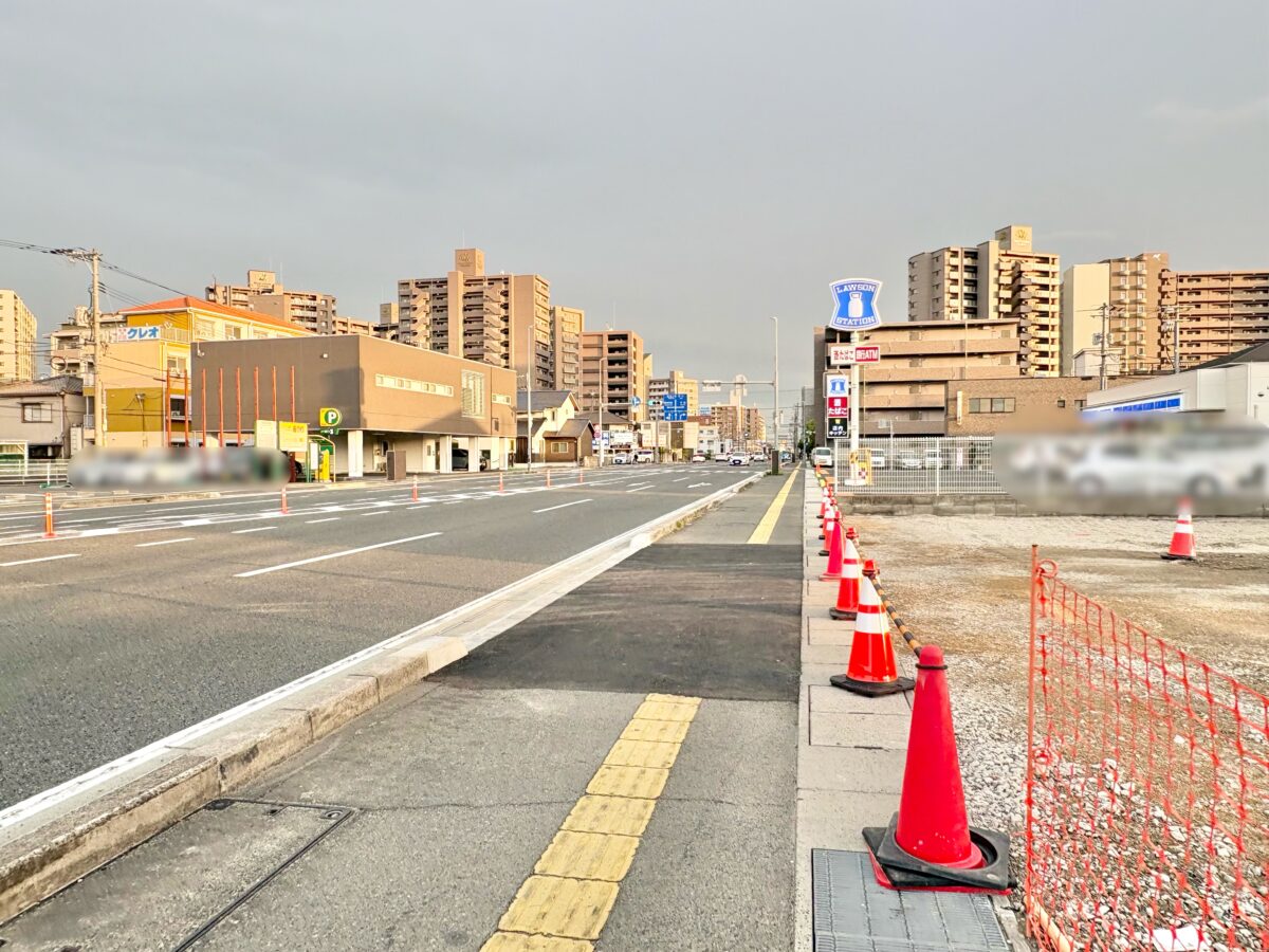 左を見ると「スシロー 岡山大供店」や岡山商工会議所のある厚生町交差点の方です。