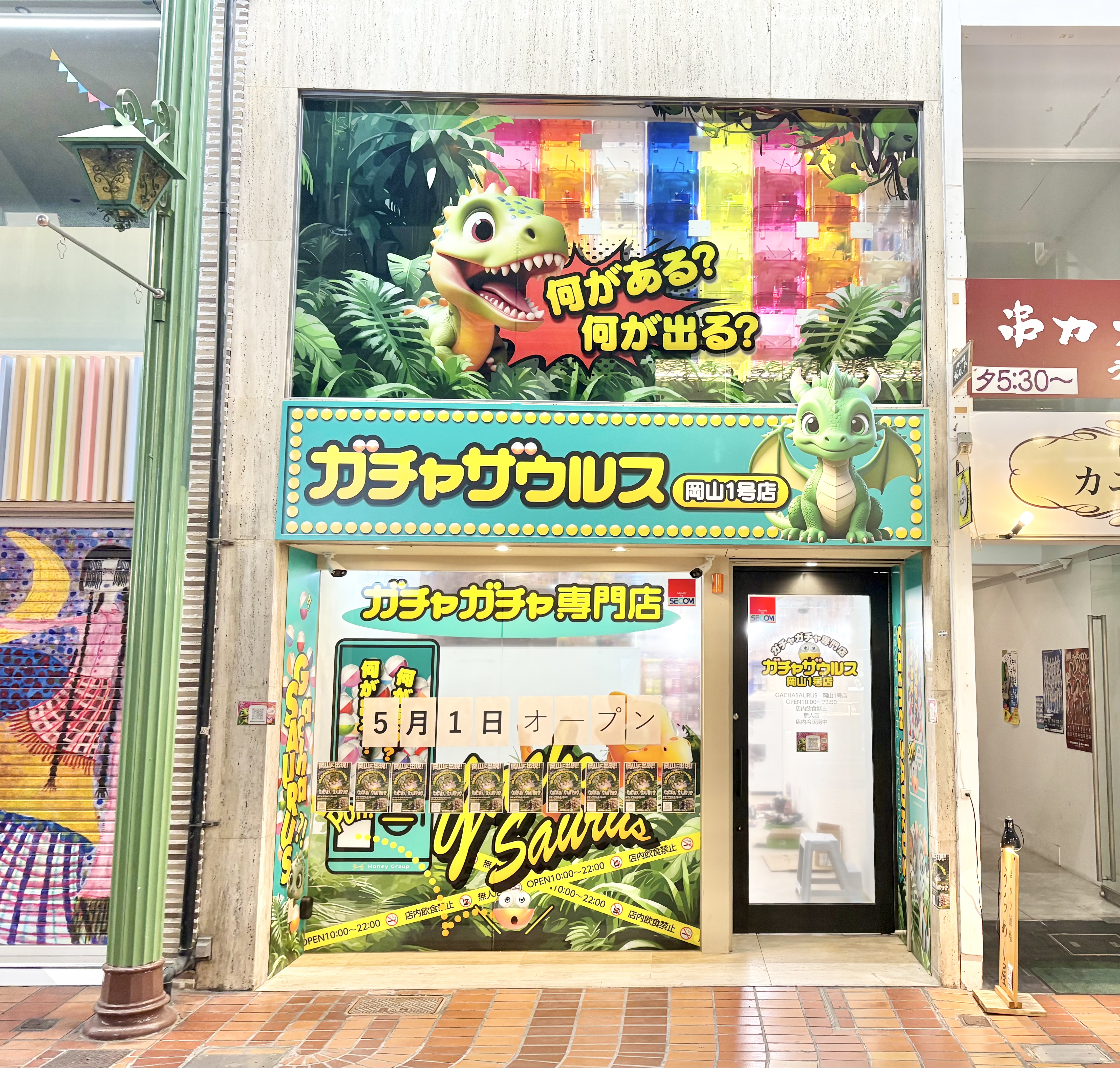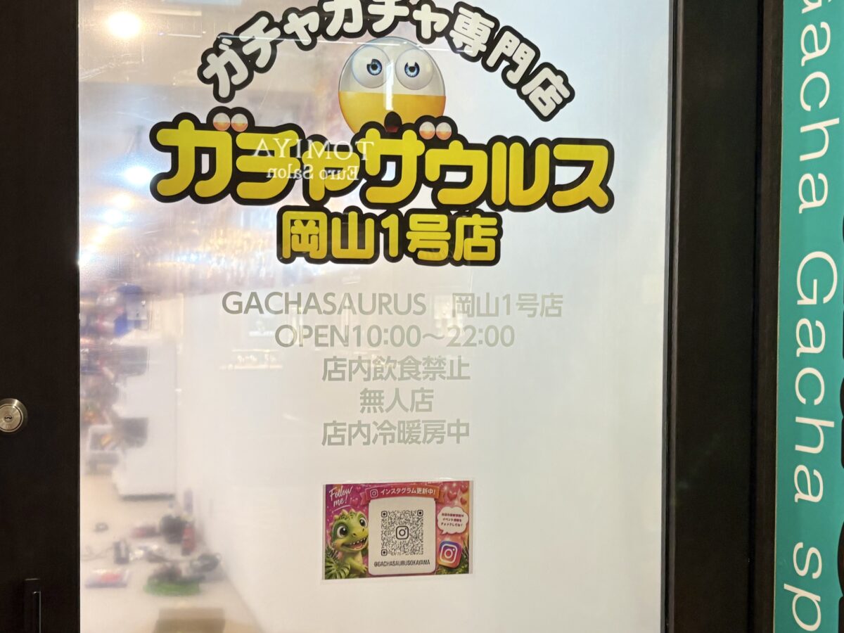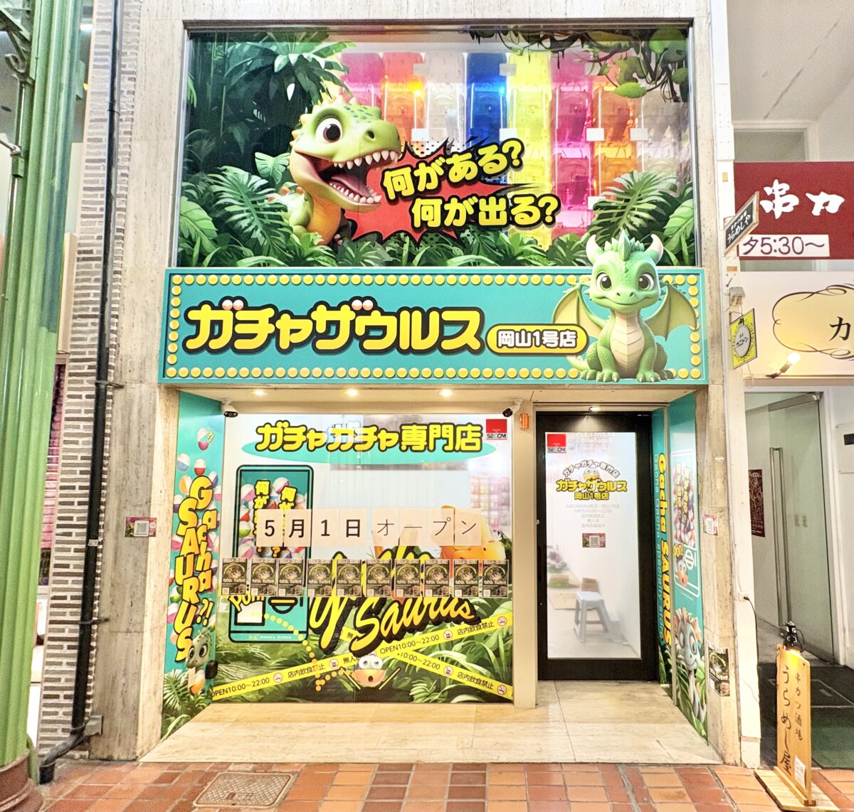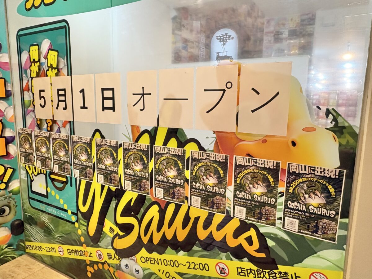 表町商店街につくっていたガチャガチャ専門店「ガチャザウルス岡山店」が5月1日にオープンするようです。