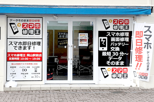 岡山駅前ドンキの裏からちょっと行ったところに「スマホ修理王 岡山駅前店」がオープンしています。