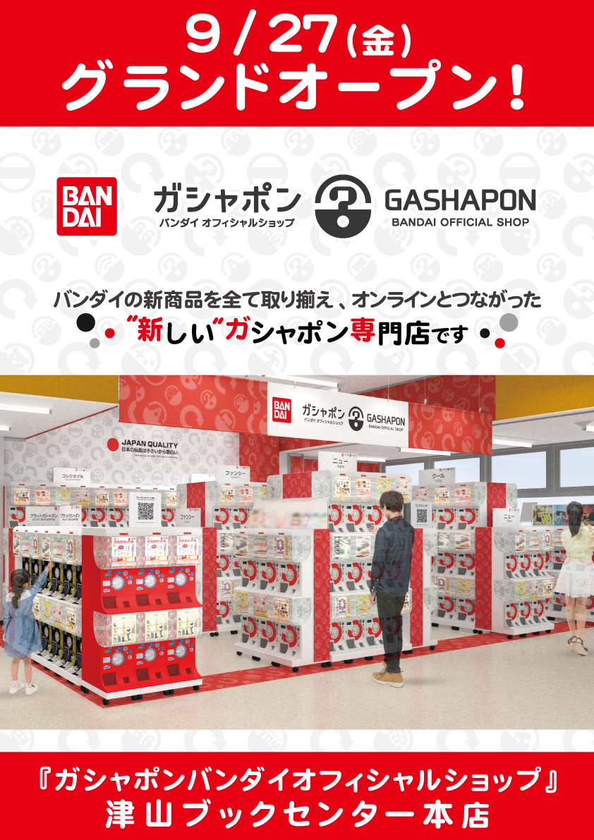 津山市河辺に「ガシャポンバンダイオフィシャルショップ津山ブックセンター本店」がオープンしています。