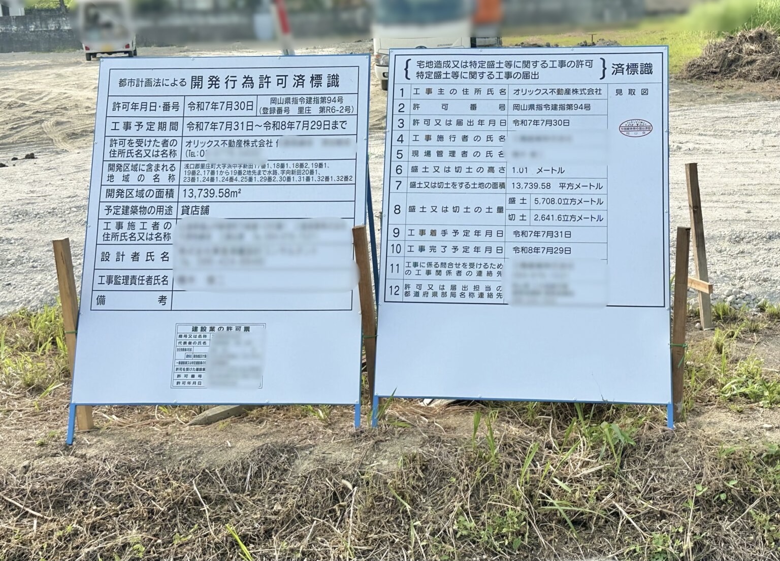 ソースは岡山県の「大規模小売店舗の新設に関する届出の縦覧」と計画地の資料です。