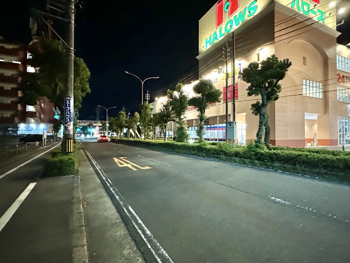 まっすぐ行くと大元駅があります。その先は「岡輝中学校」や岡南町交差点。