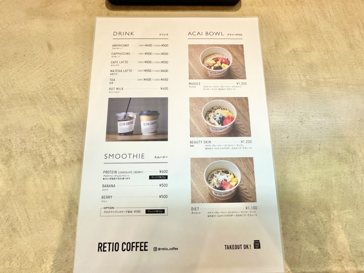 「RETIO COFFEE(レシオコーヒー)」さんは、単にジム併設というだけではなく、キノシタショウテンさんの豆のスペシャルティーコーヒーが楽しめるこだわり様。