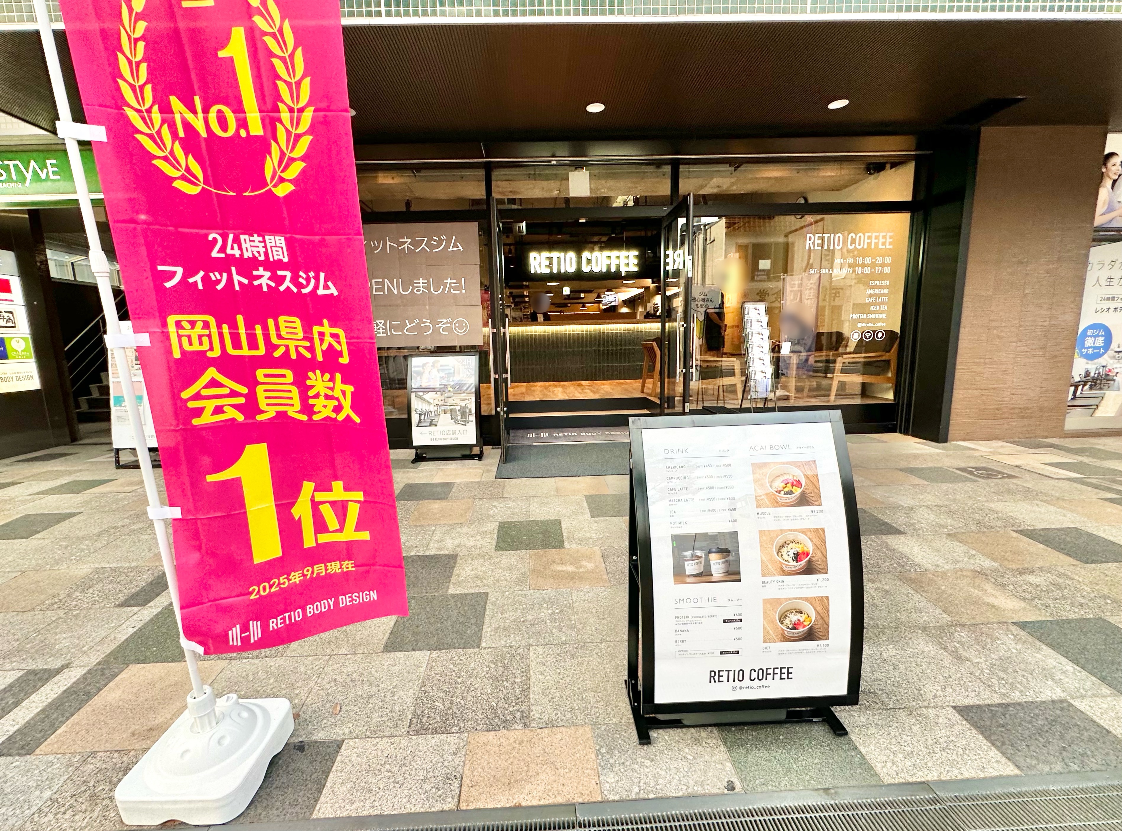 以前も記事にしていたスポーツジムの「レシオ岡山駅前店」に併設される形のカフェです。