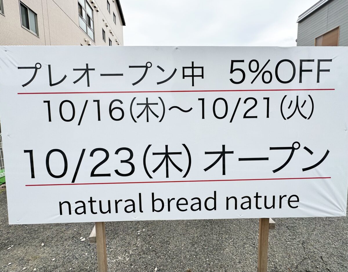 大元駅近くの「natural bread & cafe」さんは10月23日にオープンするようです。