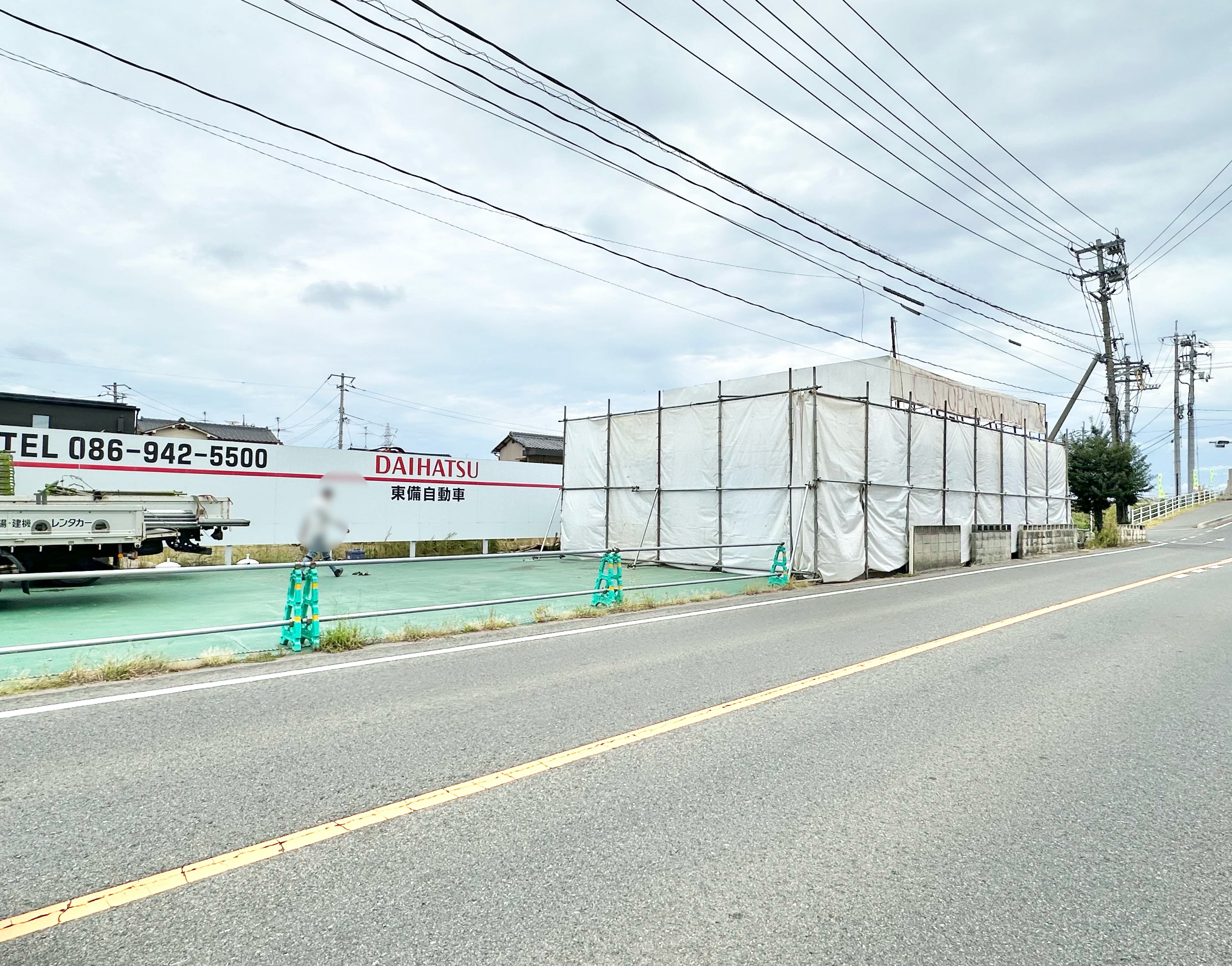 ここは岡山牛窓線沿い、砂川にかかる新橋近くの以前は民家と東備自動車販売所の建物があったとこです。