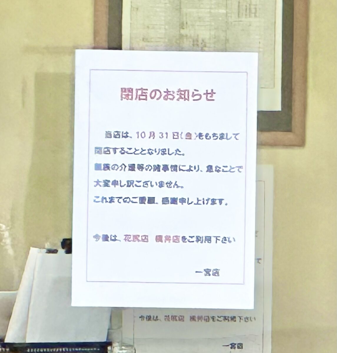 閉店後は花尻店、横井店が最寄りになるとのこと。