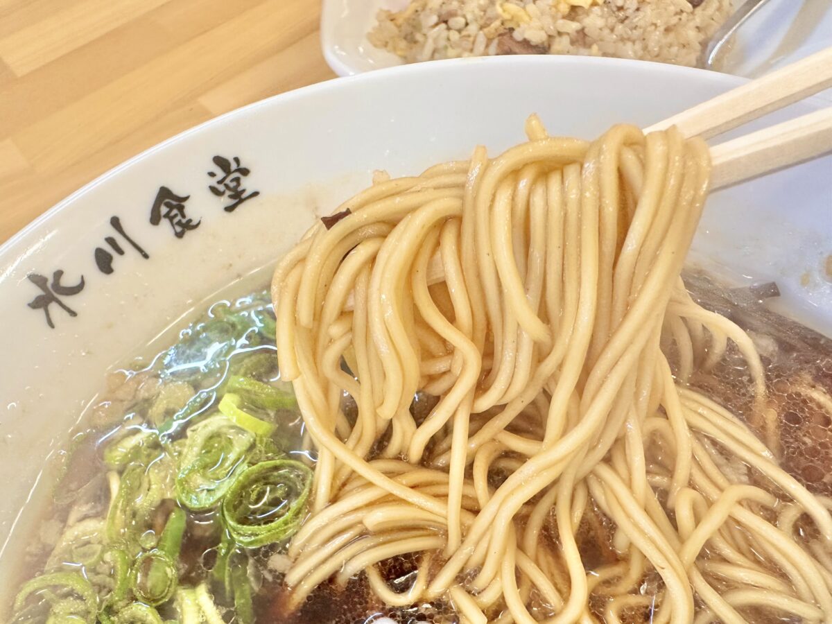 「みず川」さんとも違うビジュなんですが、見た目ほど濃くなくコクがありつつもあっさりなんでグビグビいけるスープ。
