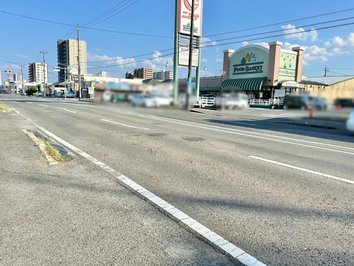 左には「ニシナ フードバスケット 中仙道店」や「中仙道幼稚園」、問屋町方面です。
