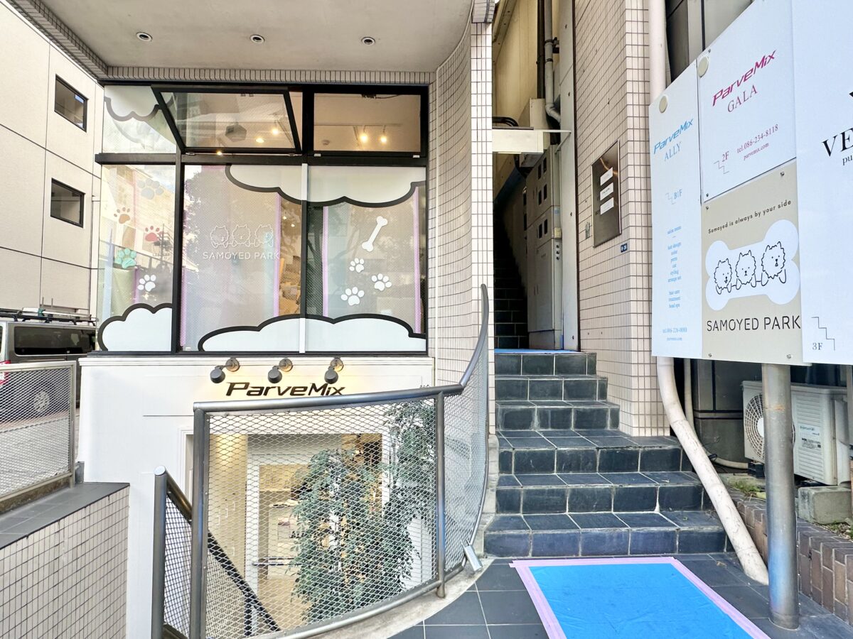 こちらは以前も記事にしたドッグカフェ「Samoyed Park(サモエドパーク) 岡山店」さんの外観。