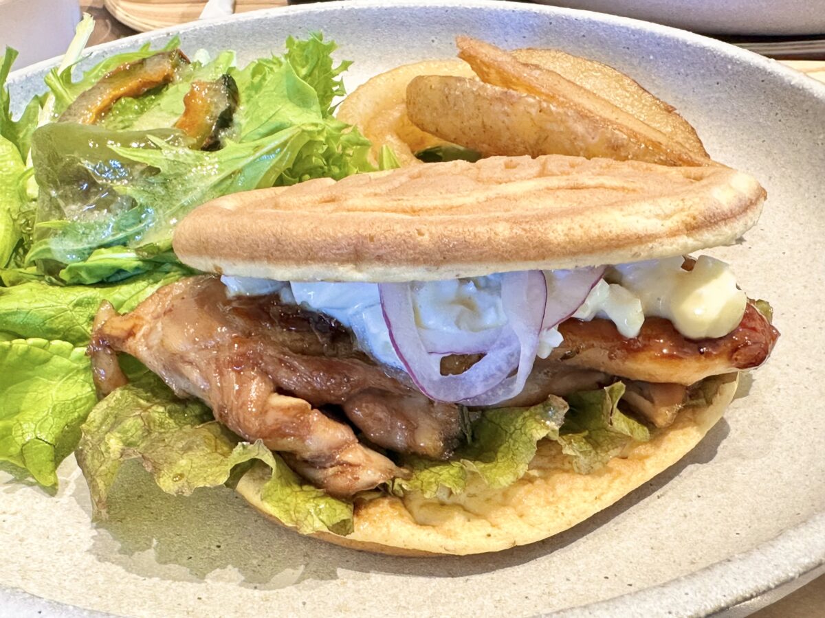 こちら「照り焼きチキンワッフルサンドプレートSET」。