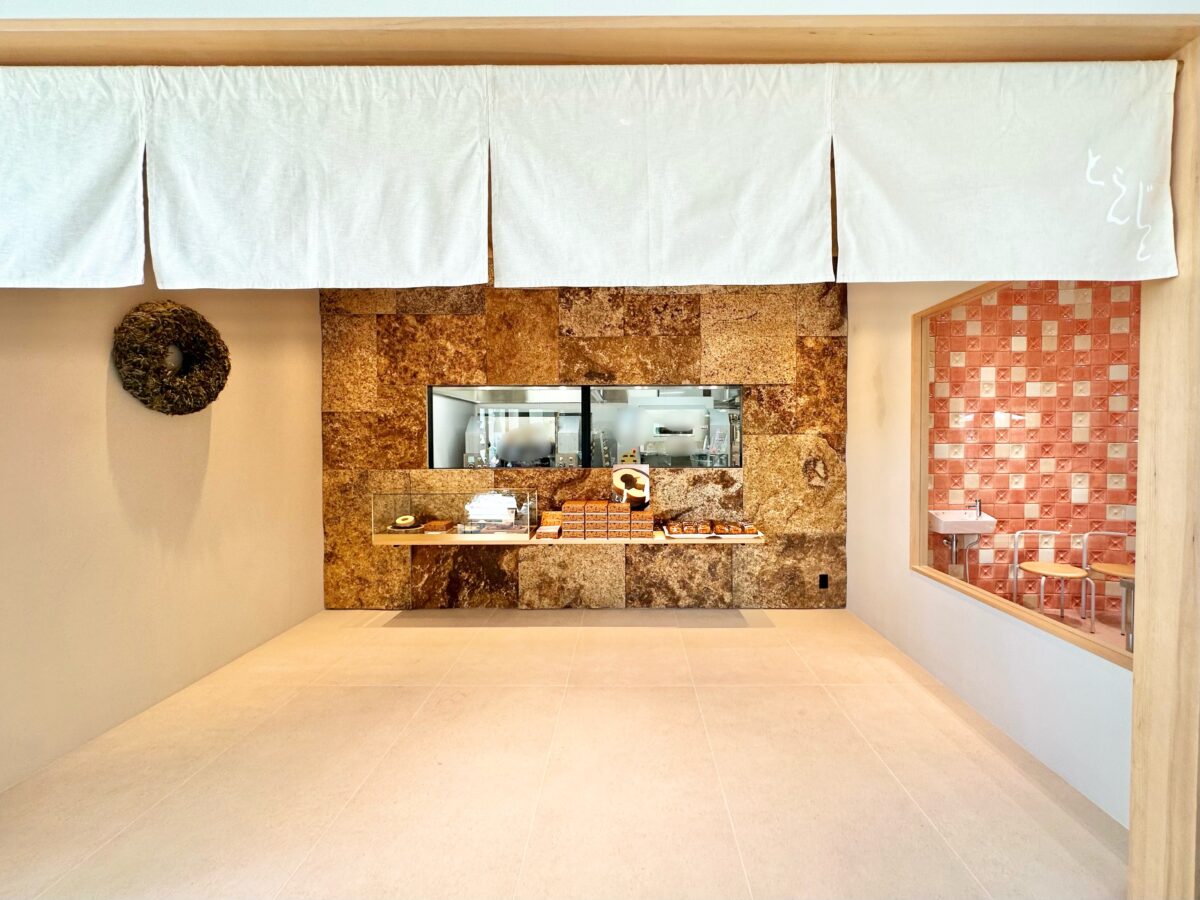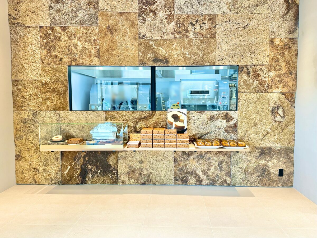 壁は萬成石を使っていて、バウムクーヘン工房も見えるように。