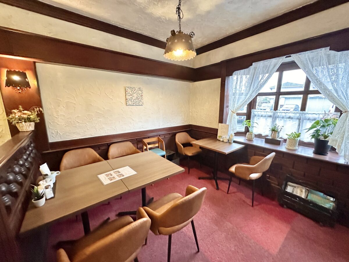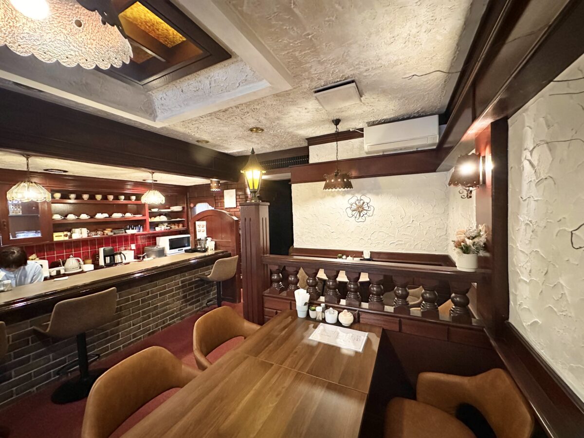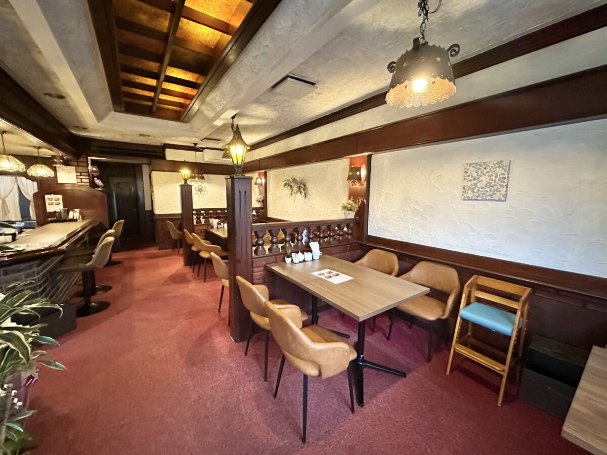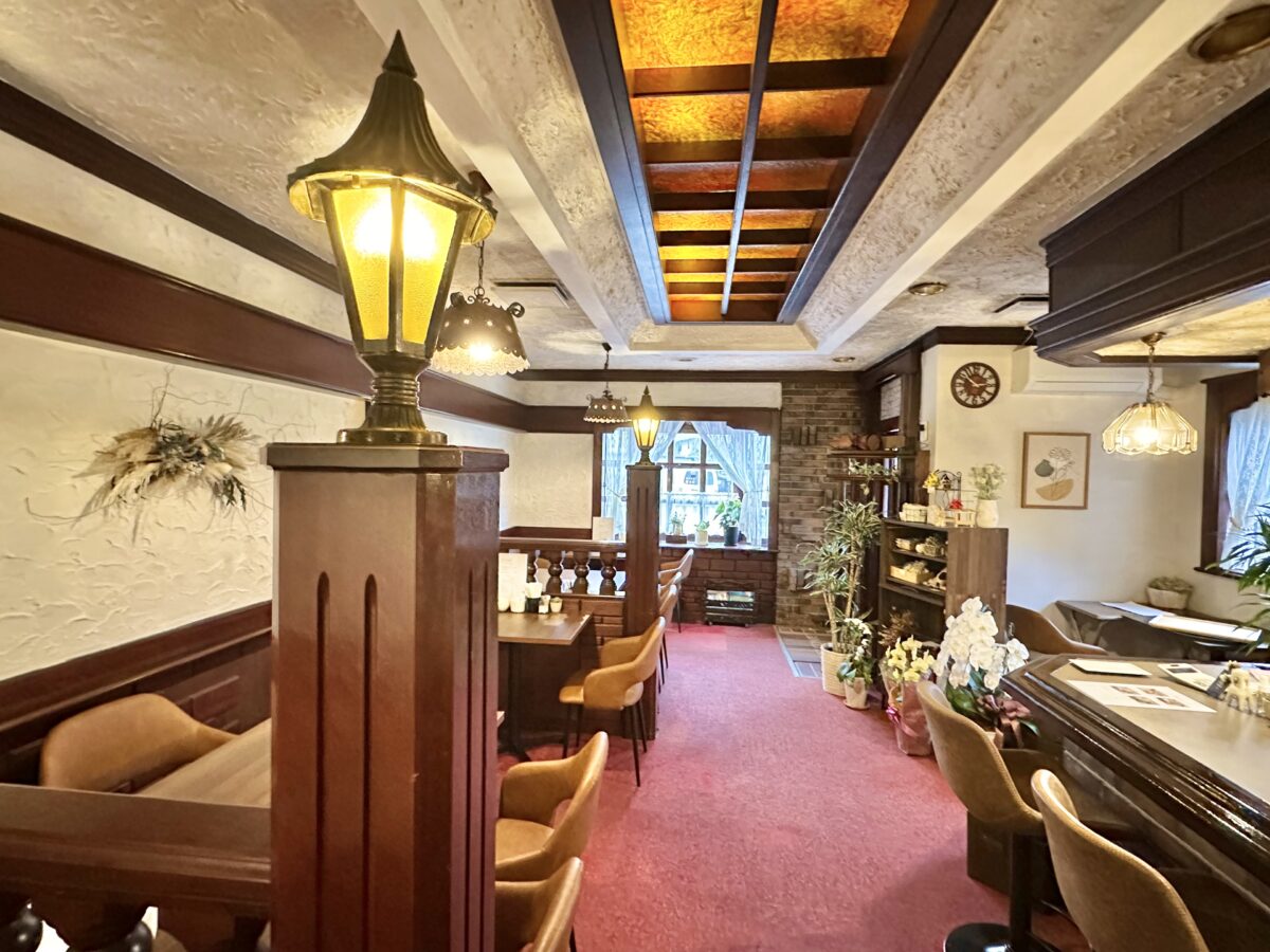 入ってみると、店内のカウンター、テーブル席、照明やインテリア、レトロな雰囲気。