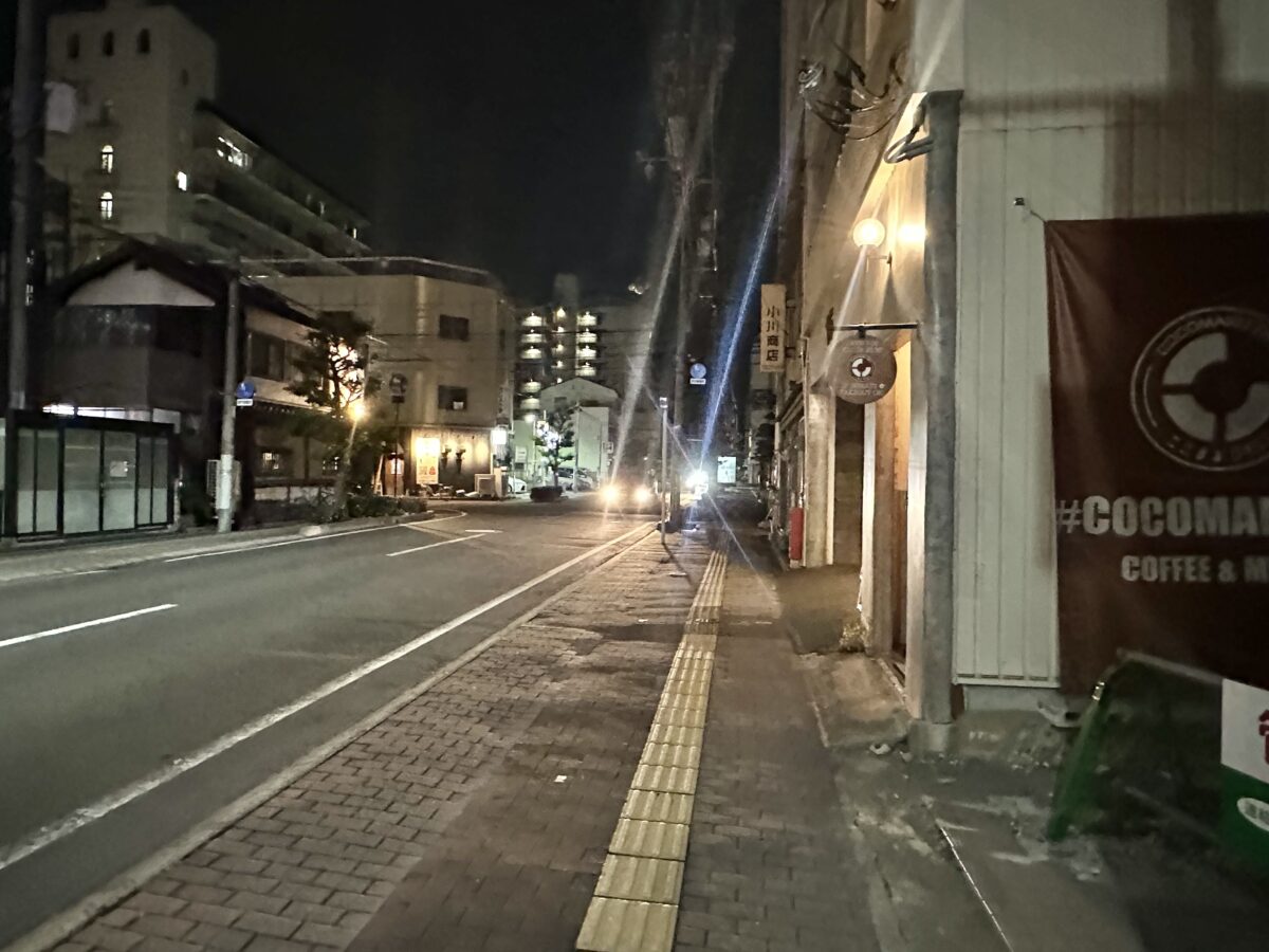 左を見ると「セブン-イレブン 岡山内山下1丁目店」、「宮二郎 OKAYAMA」があります。