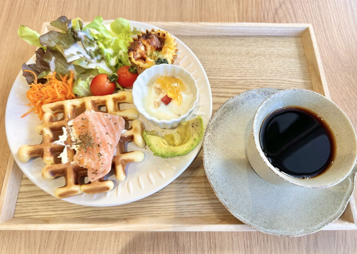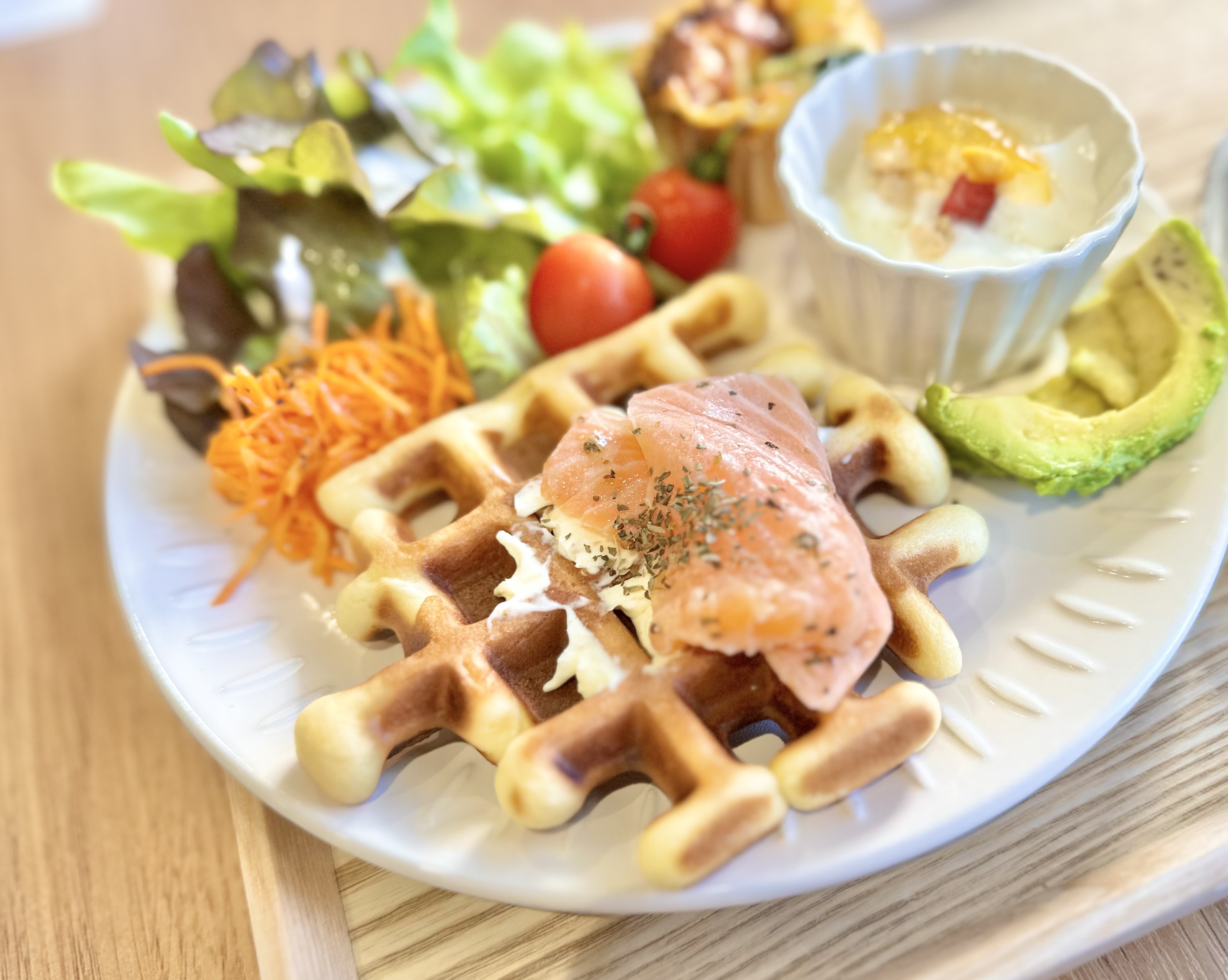 こちらはその中のブランチ「ワッフルプレート(サーモンチーズ)」です!