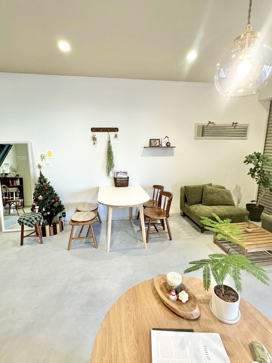 店内を見せてもらいました。内装もインテリアもおしゃれで過ごしやすそうな広い店内。