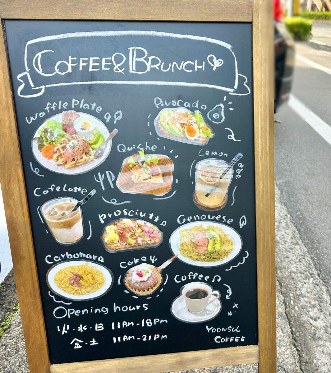 お店前の看板にはコーヒーやブランチなど。