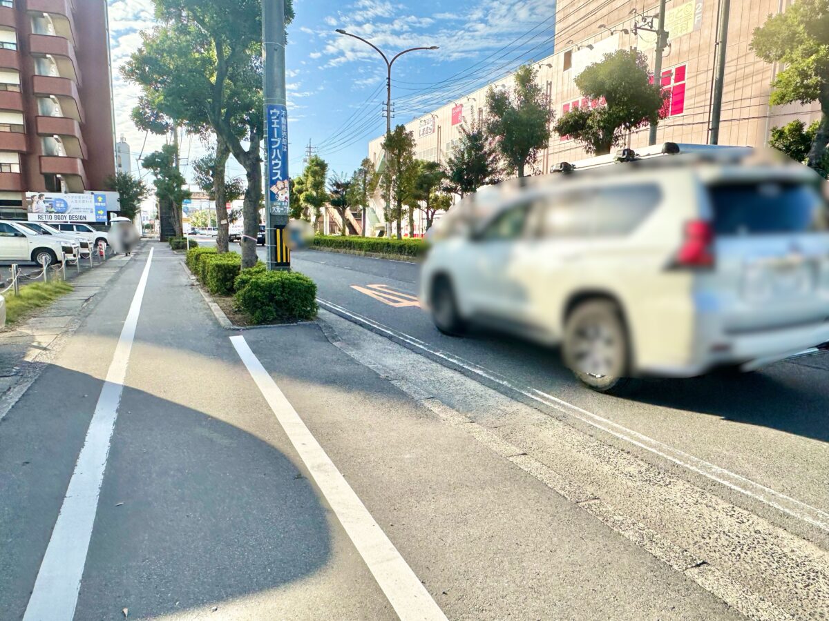 こっちに行くと大元駅があります。その先は「岡輝中学校」や岡南町交差点。