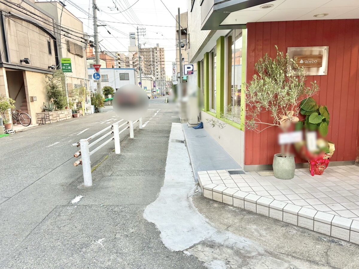南を見ると「ひだや柳町店」や「広島つけ麺かず 岡山柳町店」などがあるあたりに。