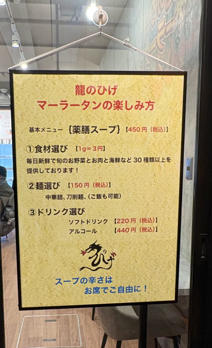 他の麻辣湯のお店だと、辛さは注文した記憶があるんですけど「龍のひげ」さんでは卓上スパイスで調整するスタイルです。