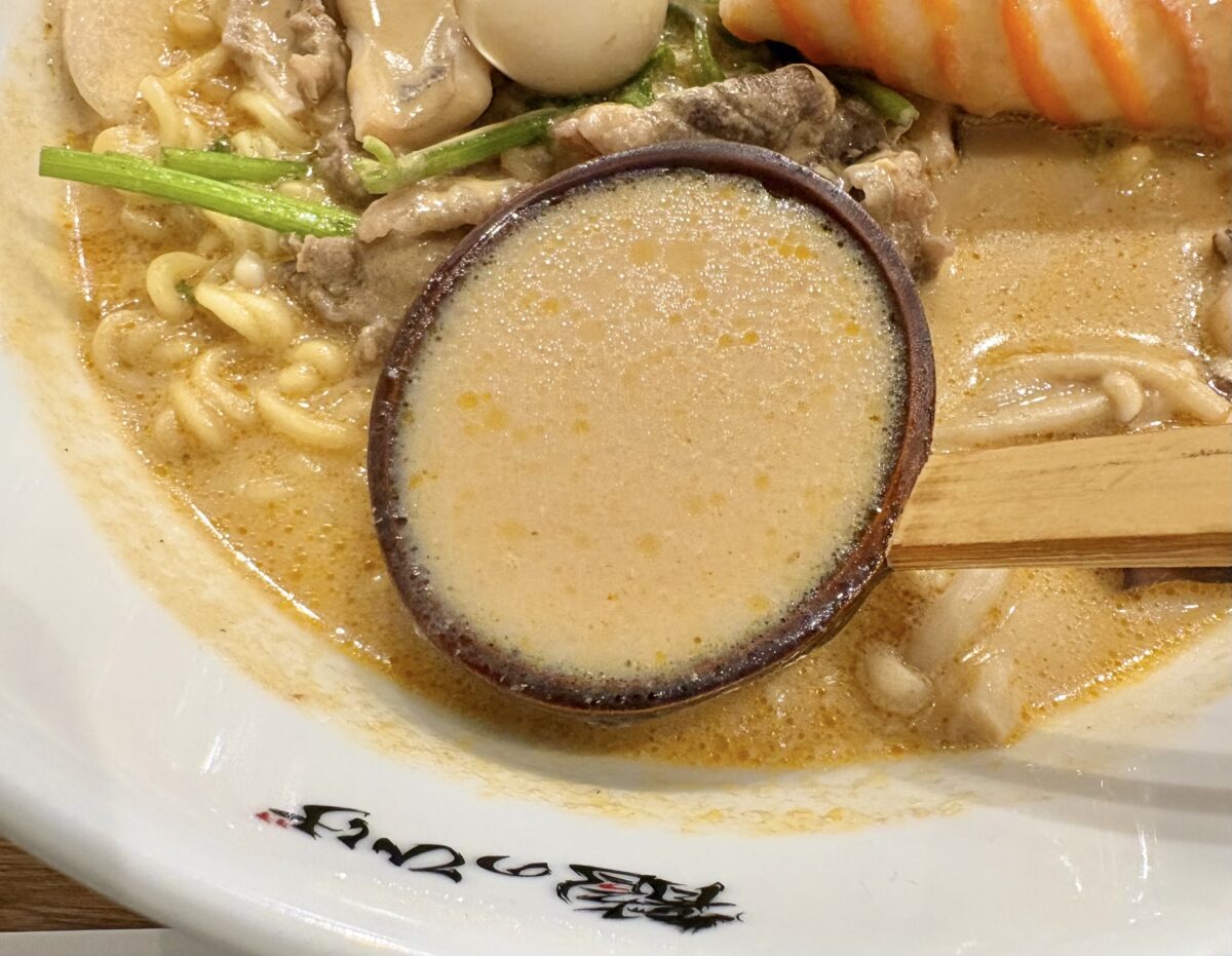 なので、運ばれてきた段階のノーマル薬膳スープは辛さかなり控えめでクリーミーなかんじ。