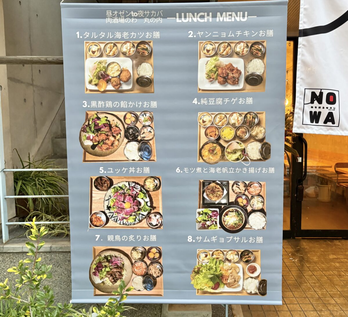 岡山県庁近くの「韓国鉄板NOWA」さんが「昼オゼンと夜サカバ NOWA」になっています。