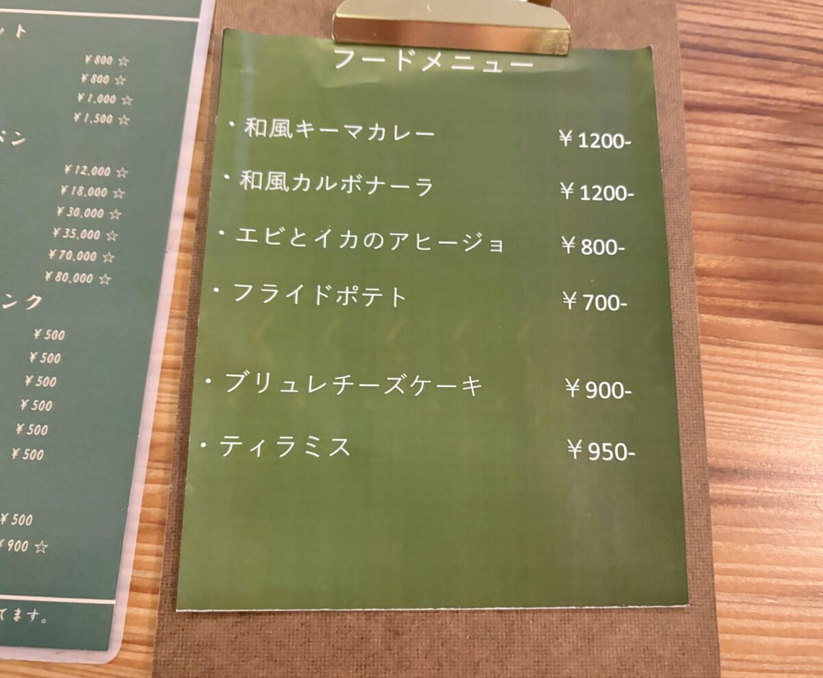 フードメニューがこちら。