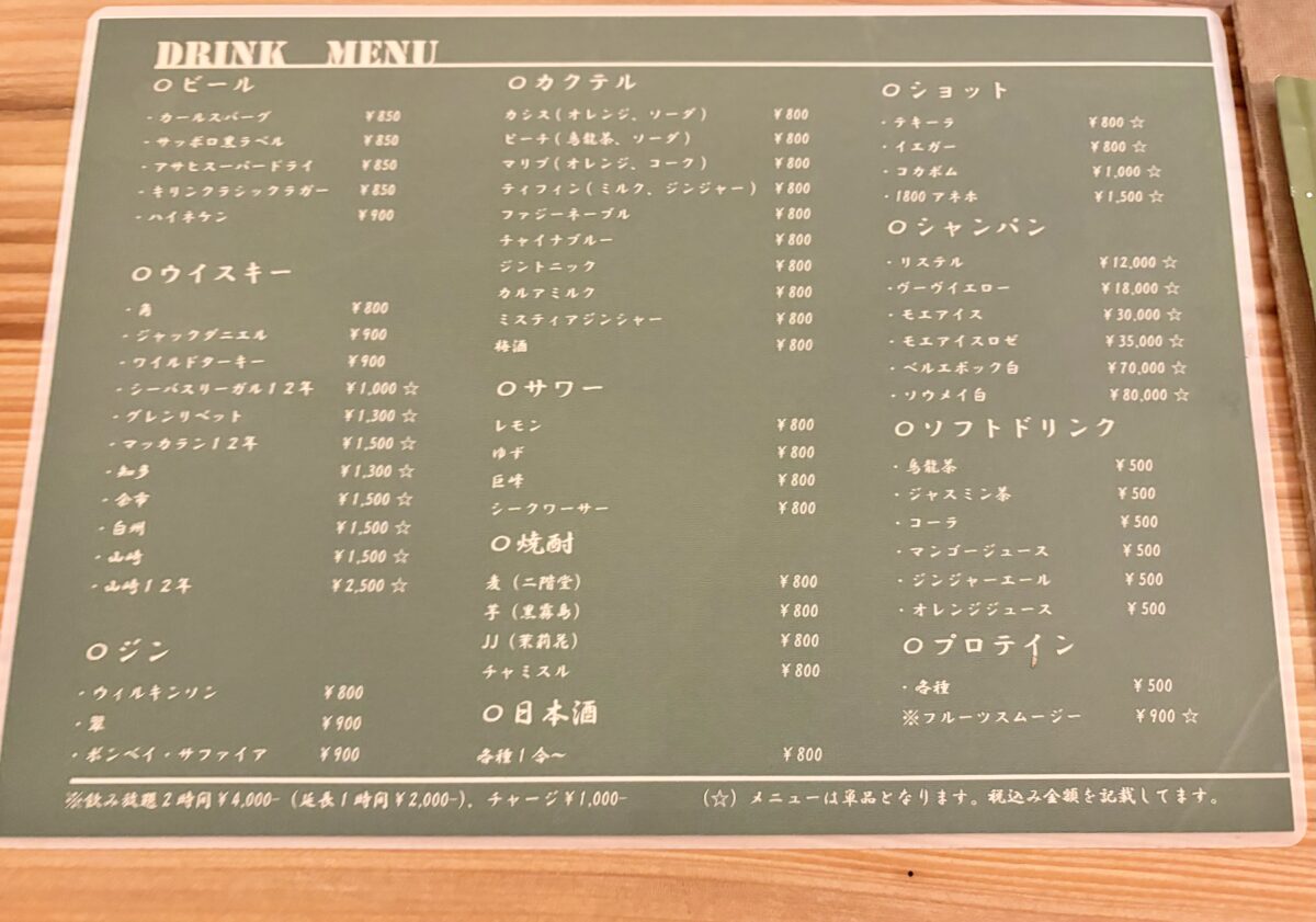 ビール・ウイスキー、ジン、カクテルからソフトドリンク、プロテインまであります。