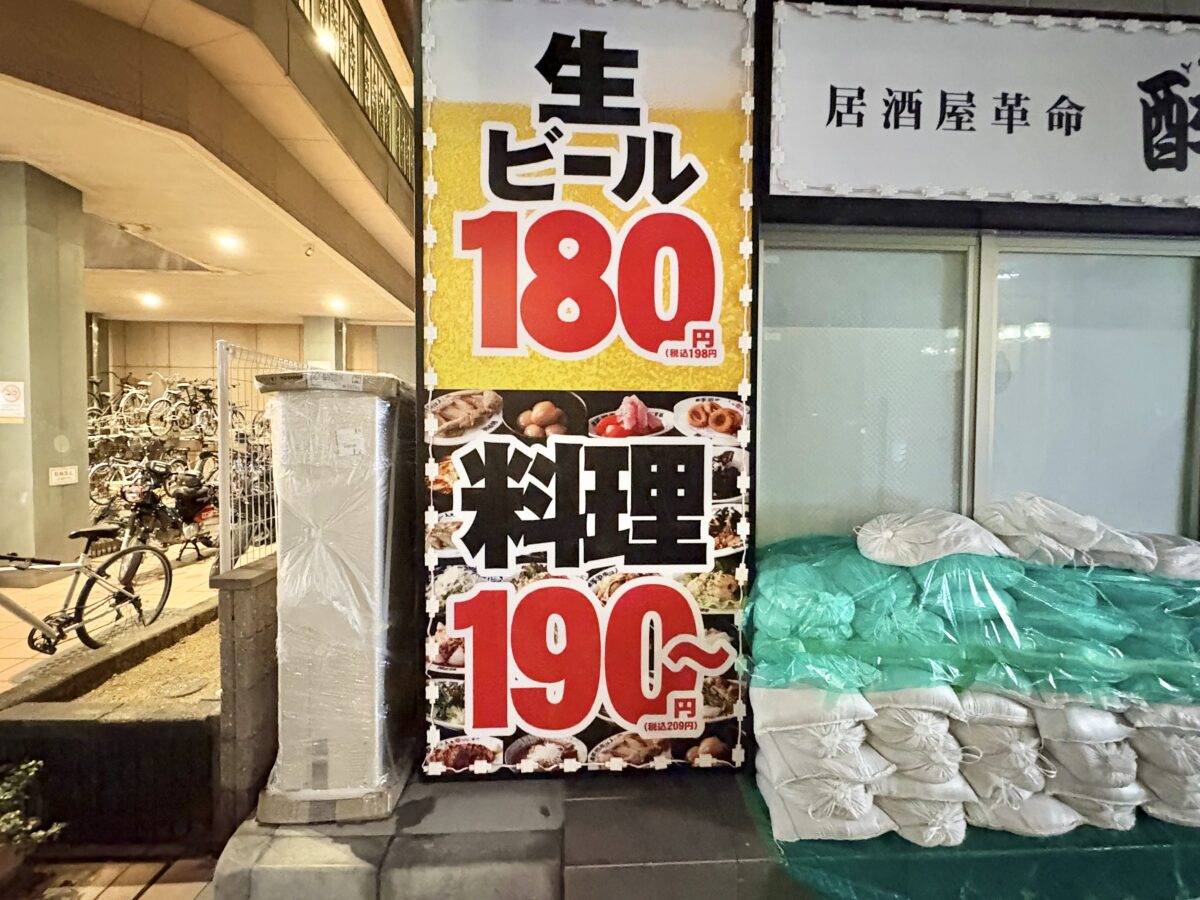 生ビール180円、料理は190円からとかなりリーズナブルな価格設定のようです。