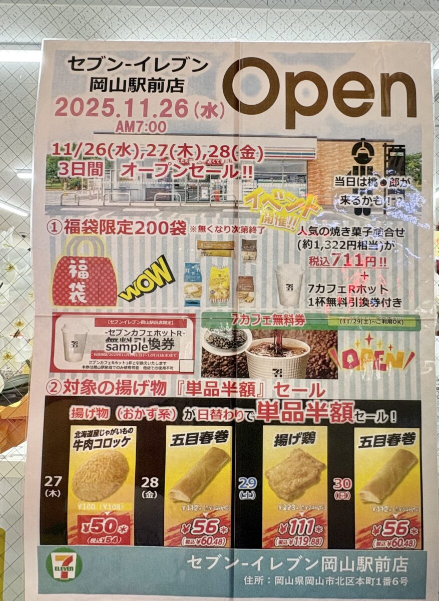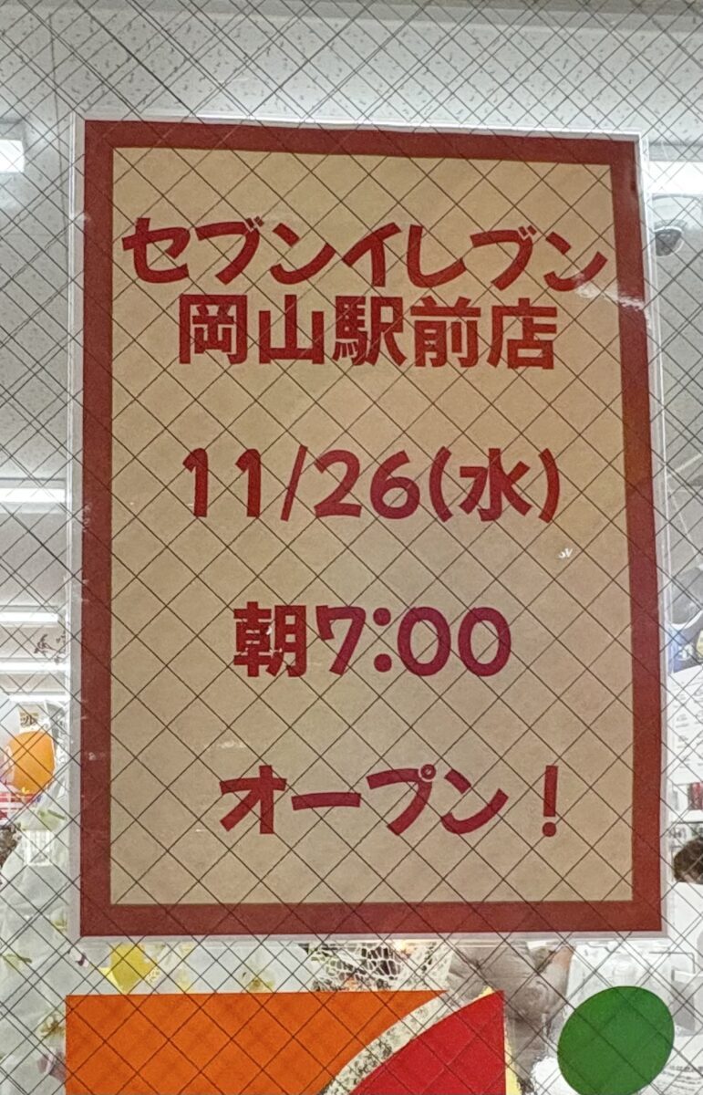 「セブンイレブン岡山駅前店」がオープンしています。