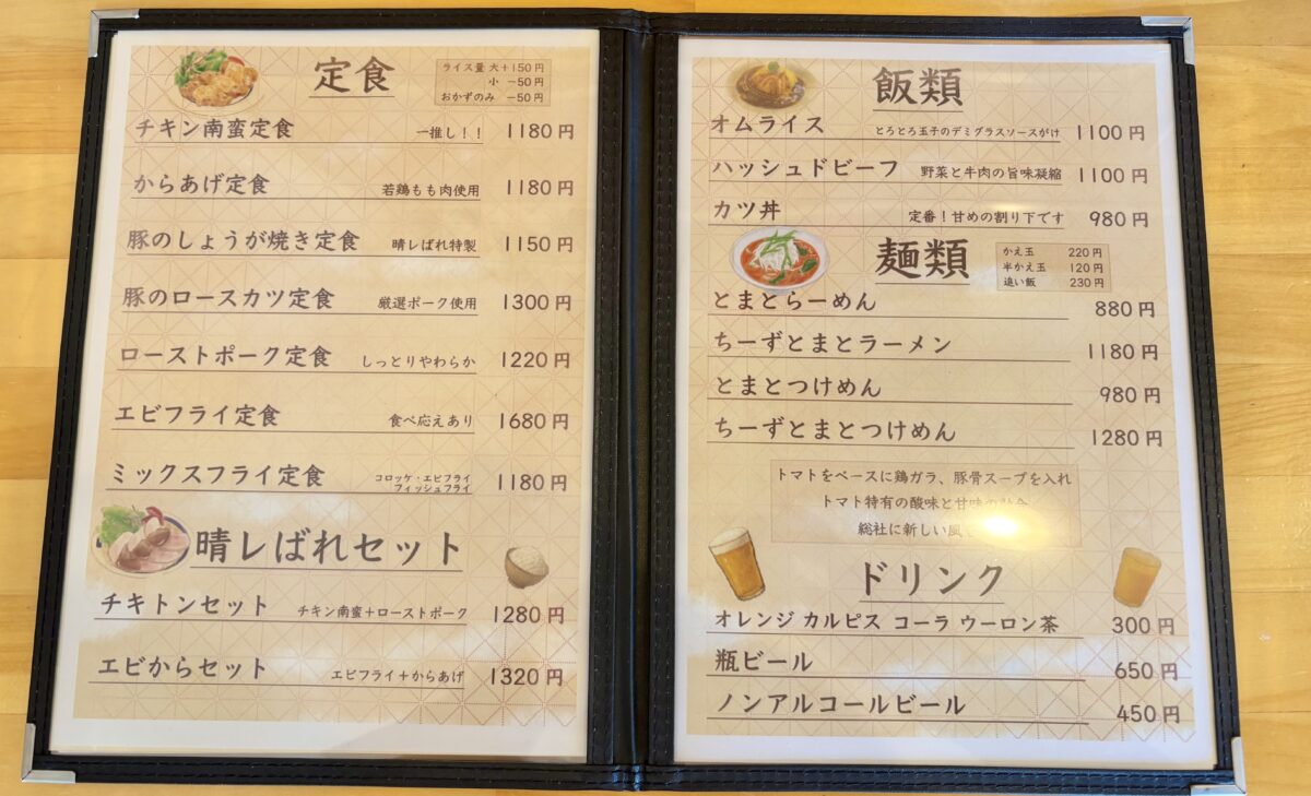 今回食べたいものを食べちゃったんですけど、「キッチン 晴レばれ。」さんは“とまとらーめん”と定食のお店。
