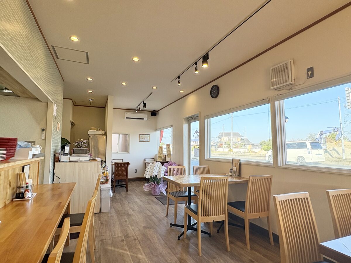 カウンターとテーブル席があって、日が差し込む開放的な店内です。
