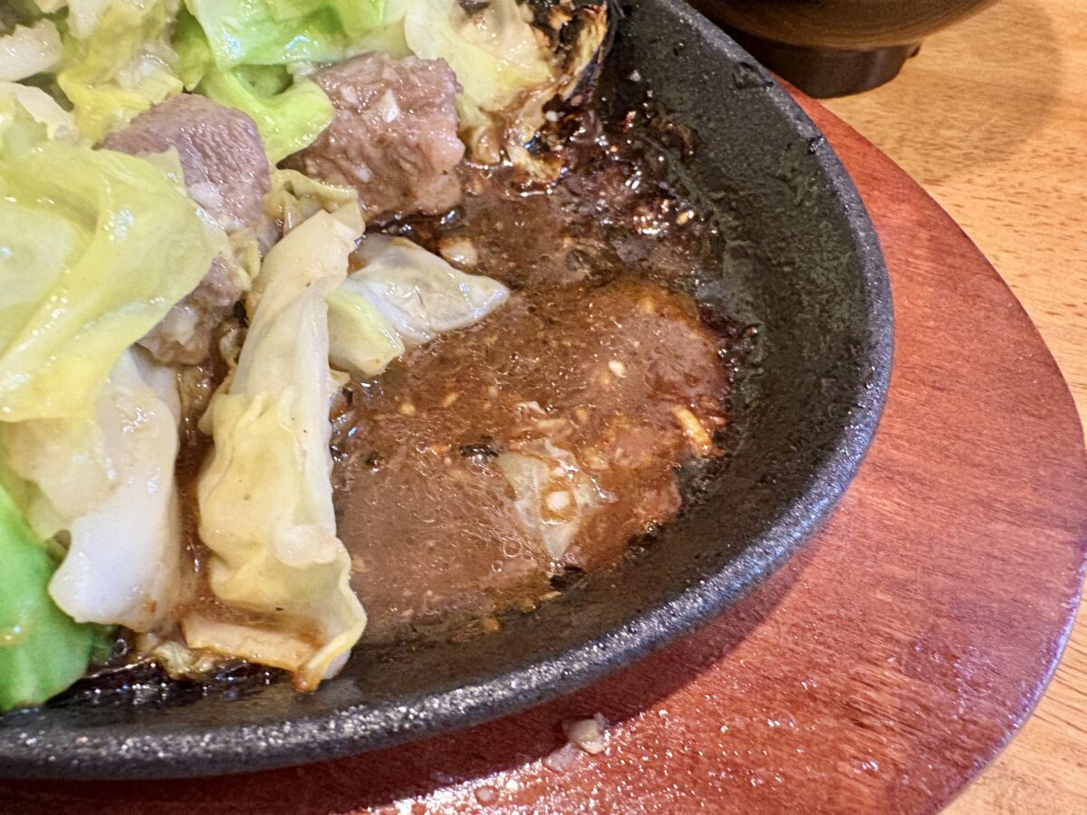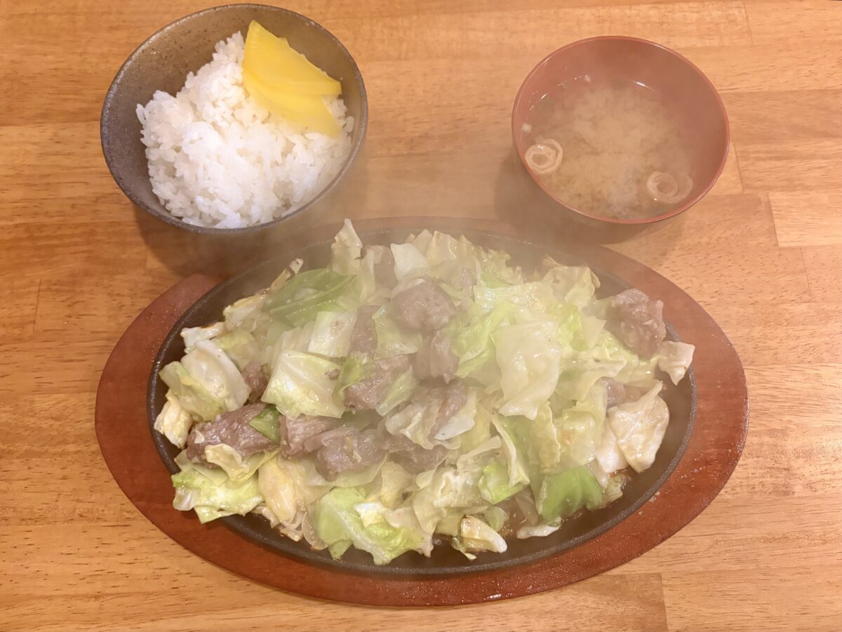 シャキシャキのキャベツとお肉が思った以上にボリュームがあってパンチの効いたタレは、ご飯の甘みを引き立ててガツガツ進むかんじ。