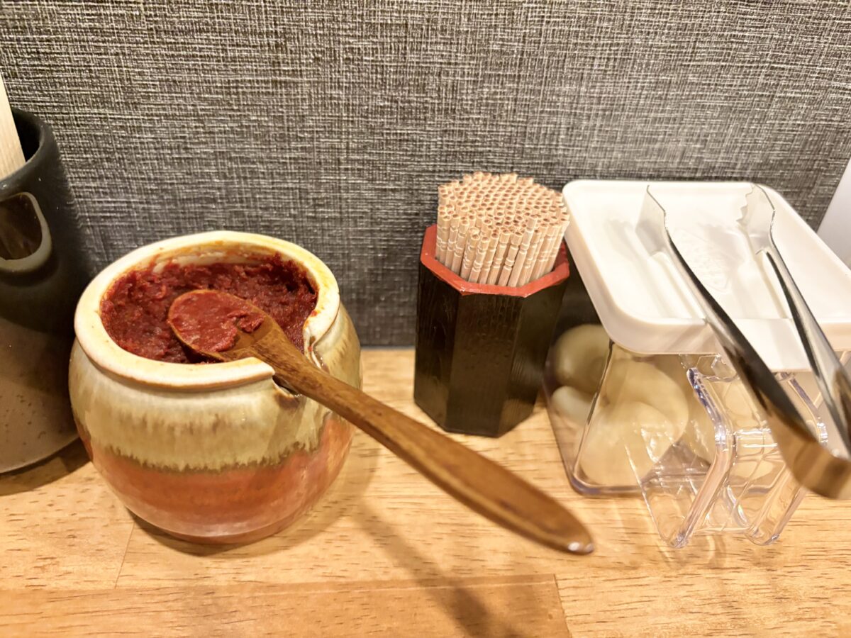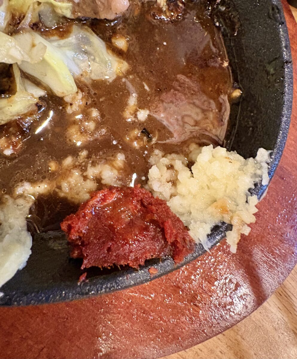 そこに卓上調味料の辛味噌とニンニクを入れて、