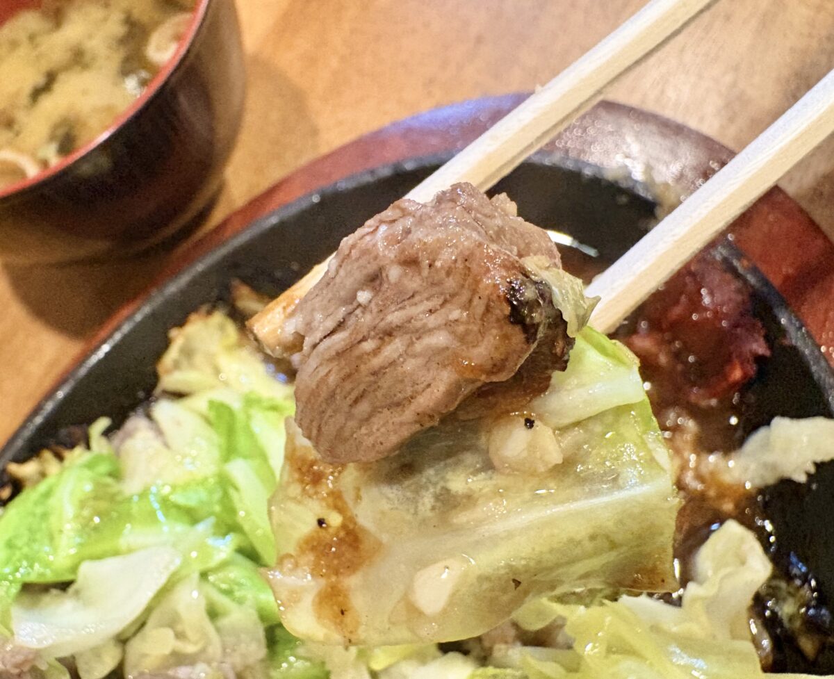 キャベツとお肉をガツンとにんにくの効いたタレでワイルドに食べる!これが博多の味!