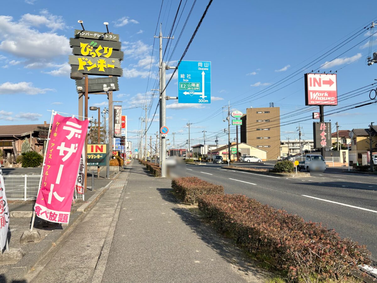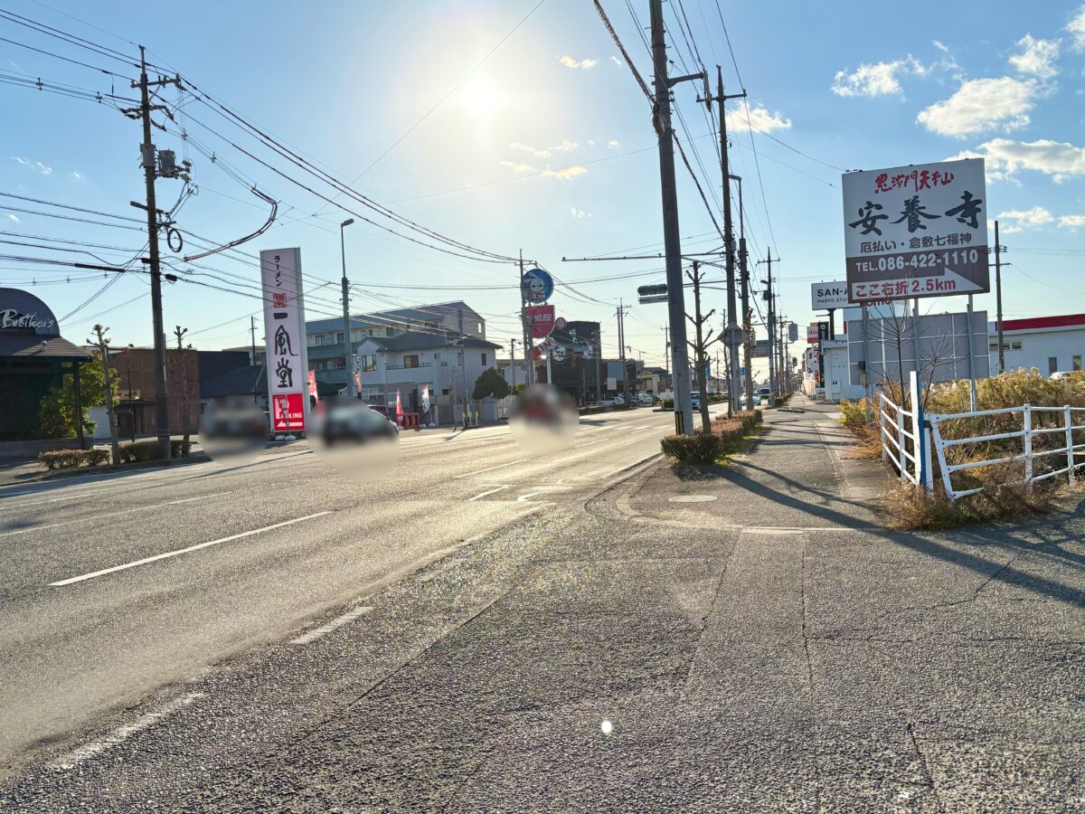 こっちを見ると「セカンドストリート 倉敷インター店」、「一風堂 倉敷店」があって、倉敷駅北口やイオンモール倉敷方面。