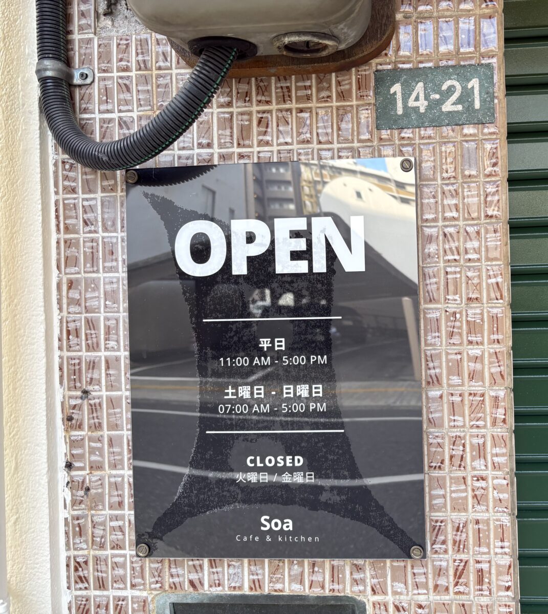 表町3丁目に「Cafe&kitchen Soa」さんという看板が付いていました。