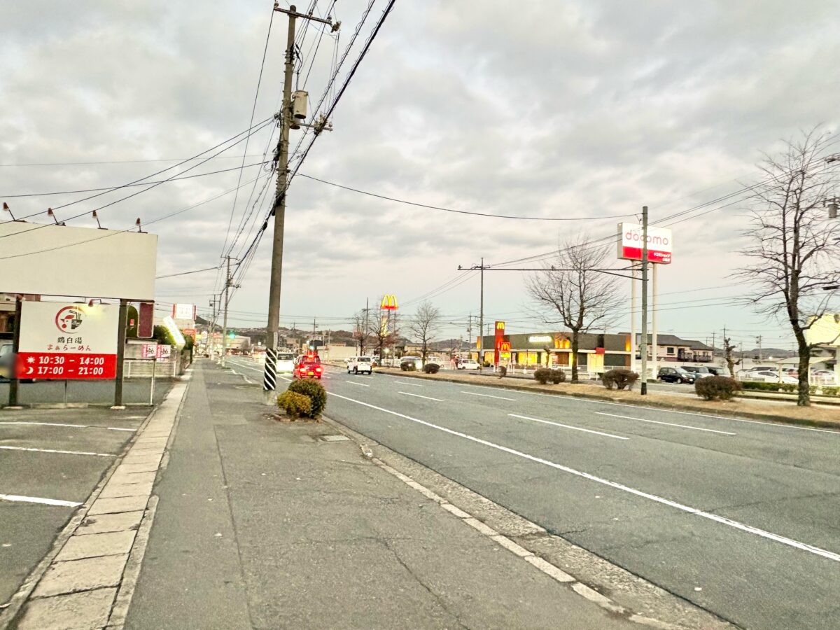 左を見ると「マクドナルド 倉敷連島店」などある五軒家線沿いです。