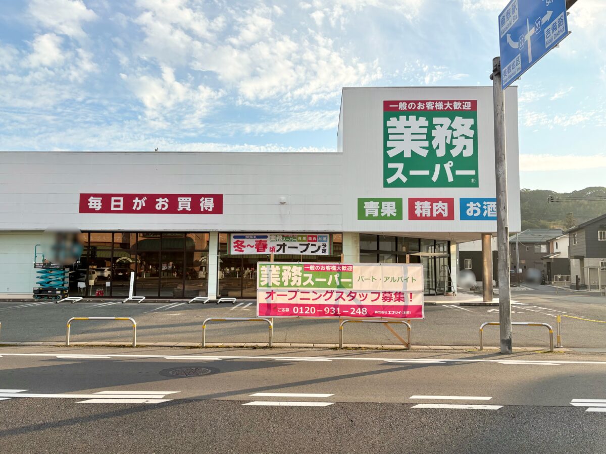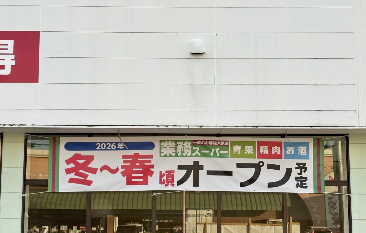 オープンまではもう少し時間がありますが、看板がついて「ああ、業務スーパーができる…!」感がすごく高まりました。