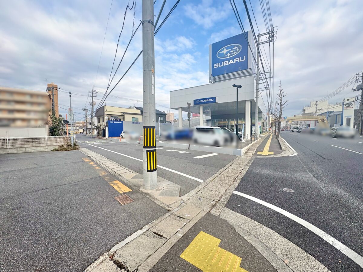 まっすぐ行くと「スバル中四国株式会社 岡山原尾島店」と「ファミリーマート 原尾島一丁目店」の間に行きます。