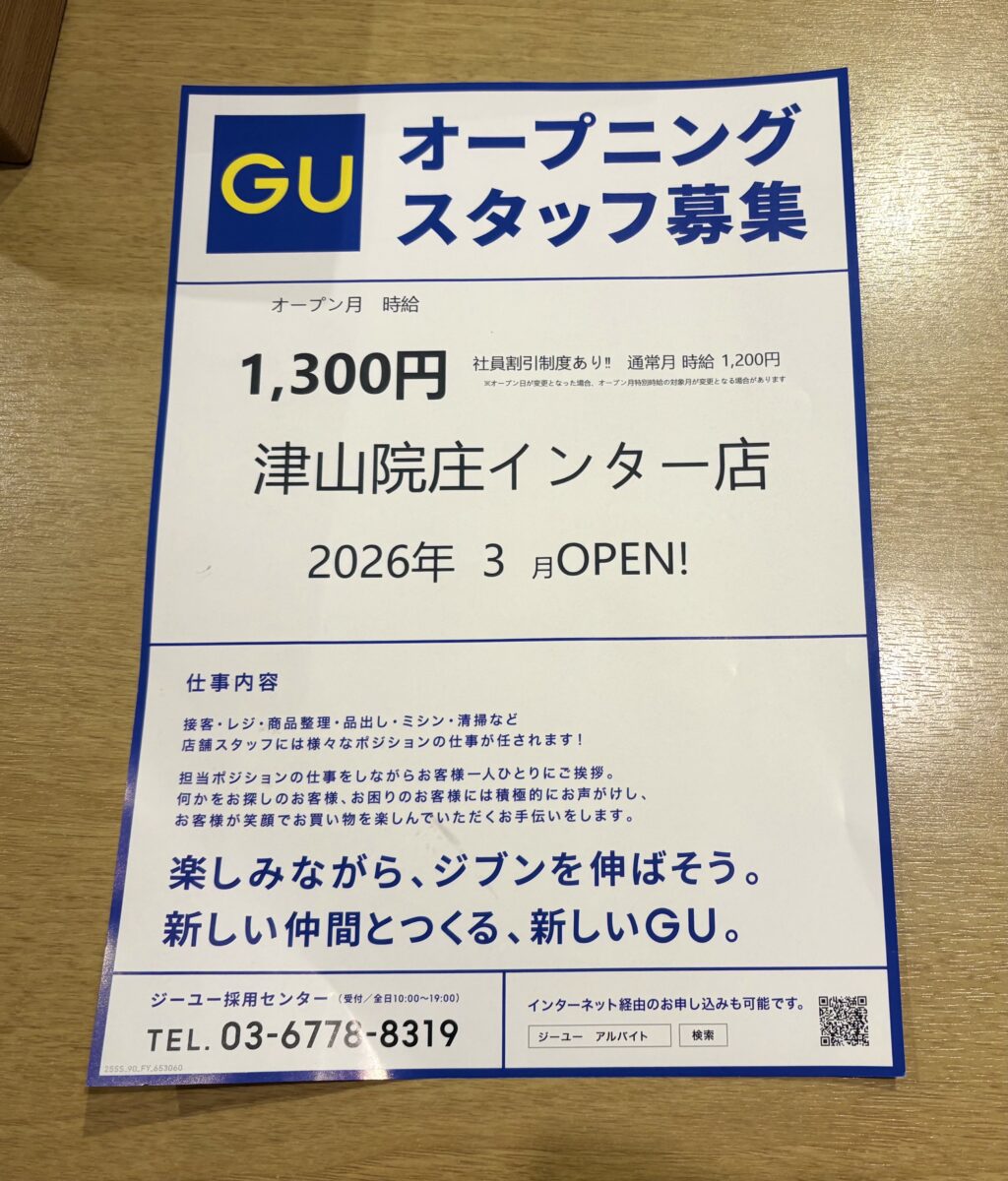 「ジーユー(GU)イオンモール津山店」が1月12日で閉店するようです。