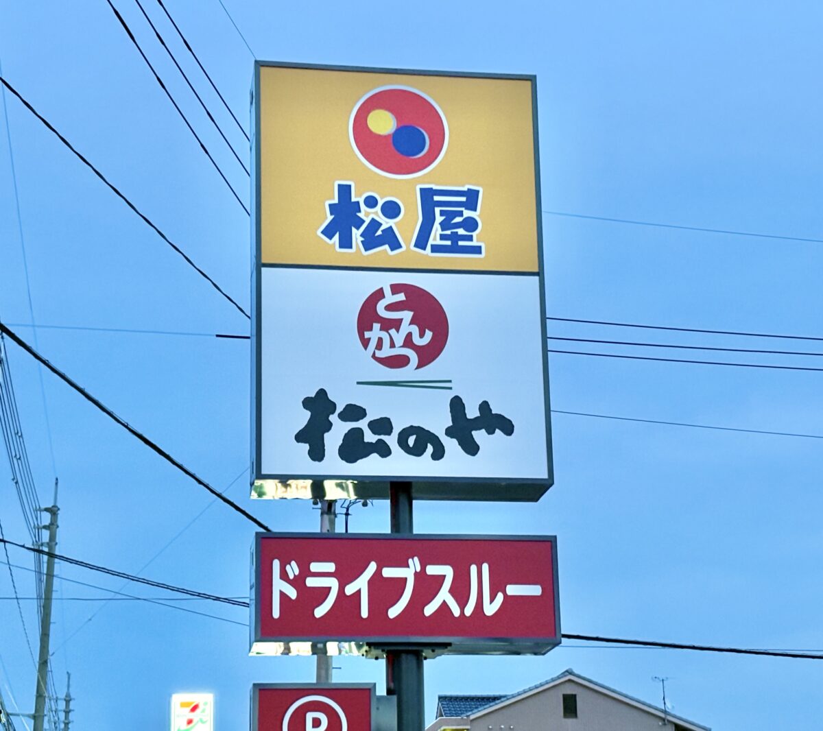 「松のや」のはご覧のとおり松屋フーズのとんかつ専門店です。ドライブスルーも併設。