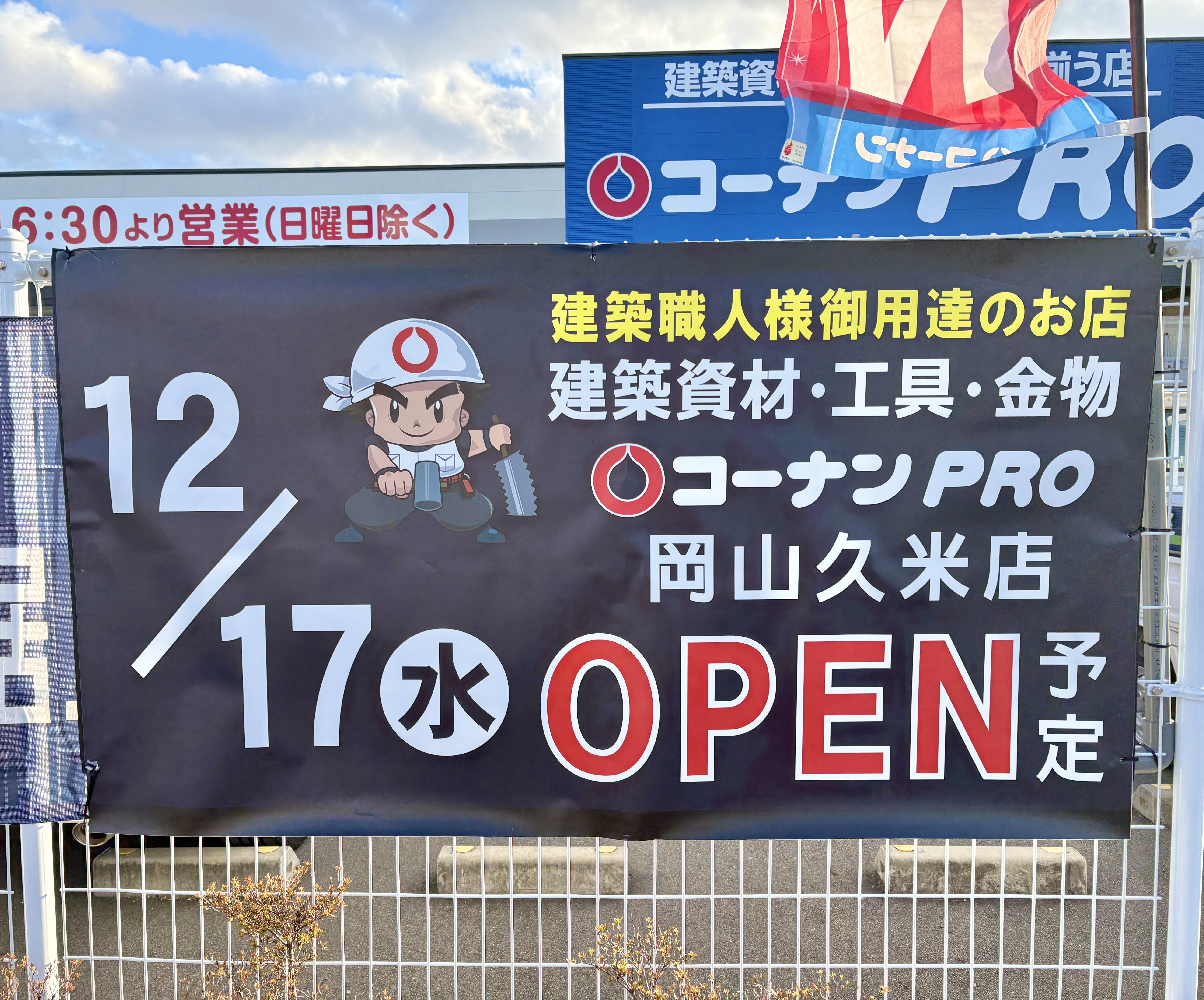 ゆめマート久米の跡地に作っていた「コーナンPRO 岡山久米店」がオープンしています。