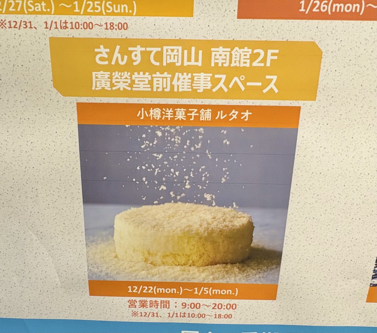 場所は新幹線改札の向かい、「さんすて岡山南館2階 廣榮堂前催事スペース」です。