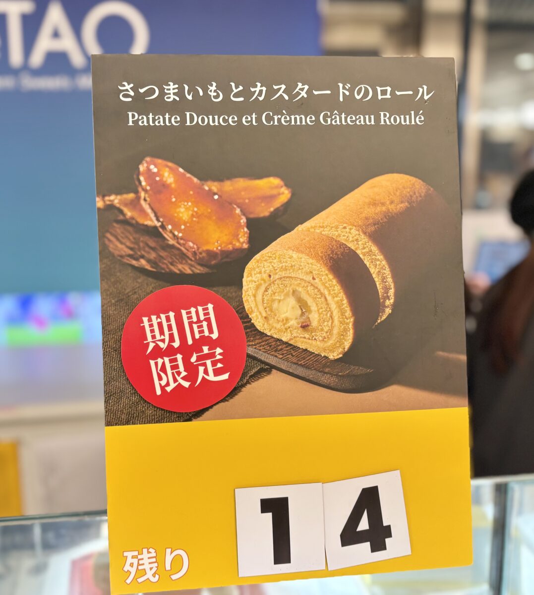 一番人気の「ドゥーブルフロマージュ」に加えてショコラドゥーブル、シーズン限定の「さつまいもとカスタードのロール」は残り少し!